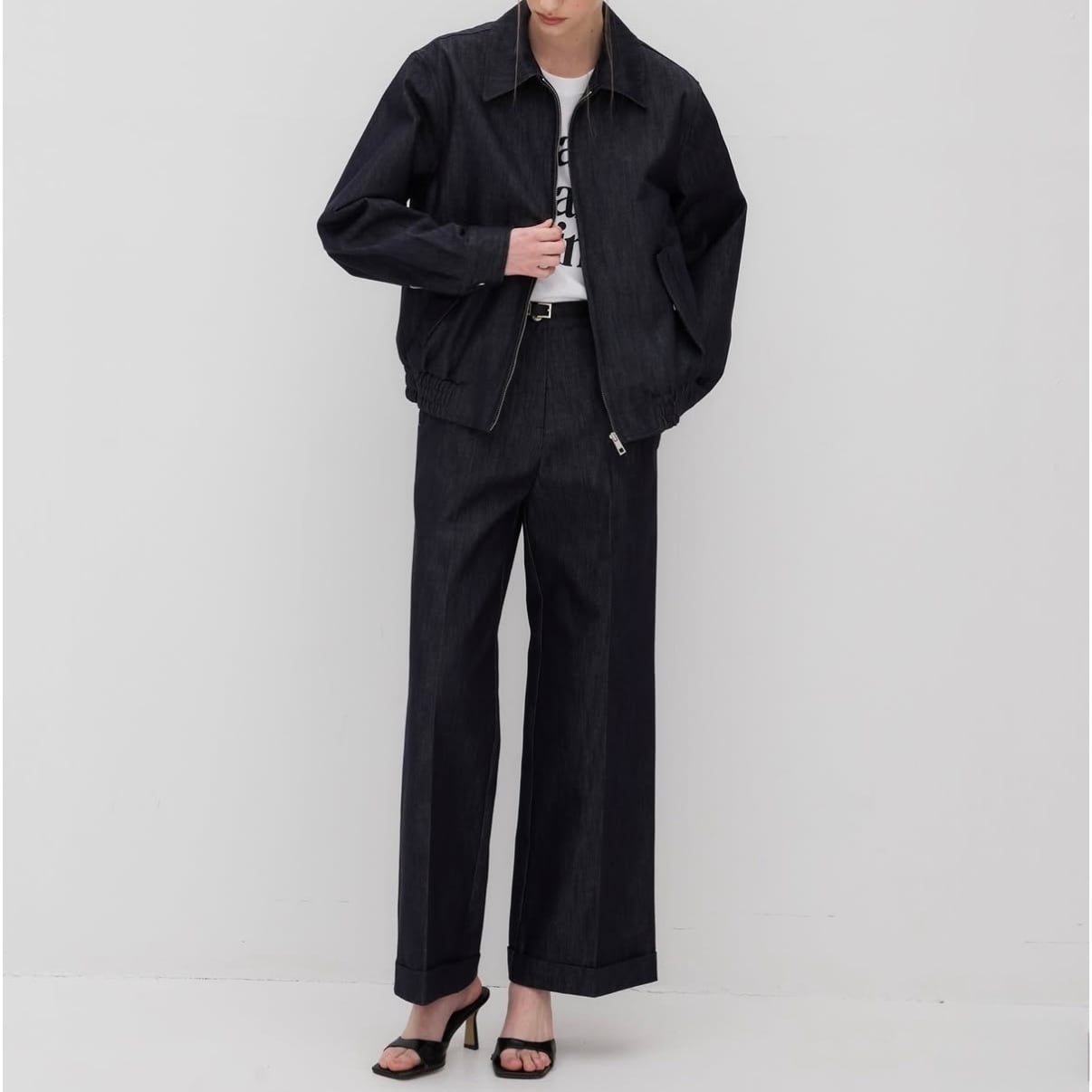 セットアップ可 デニム地ピンタックワイドパンツ