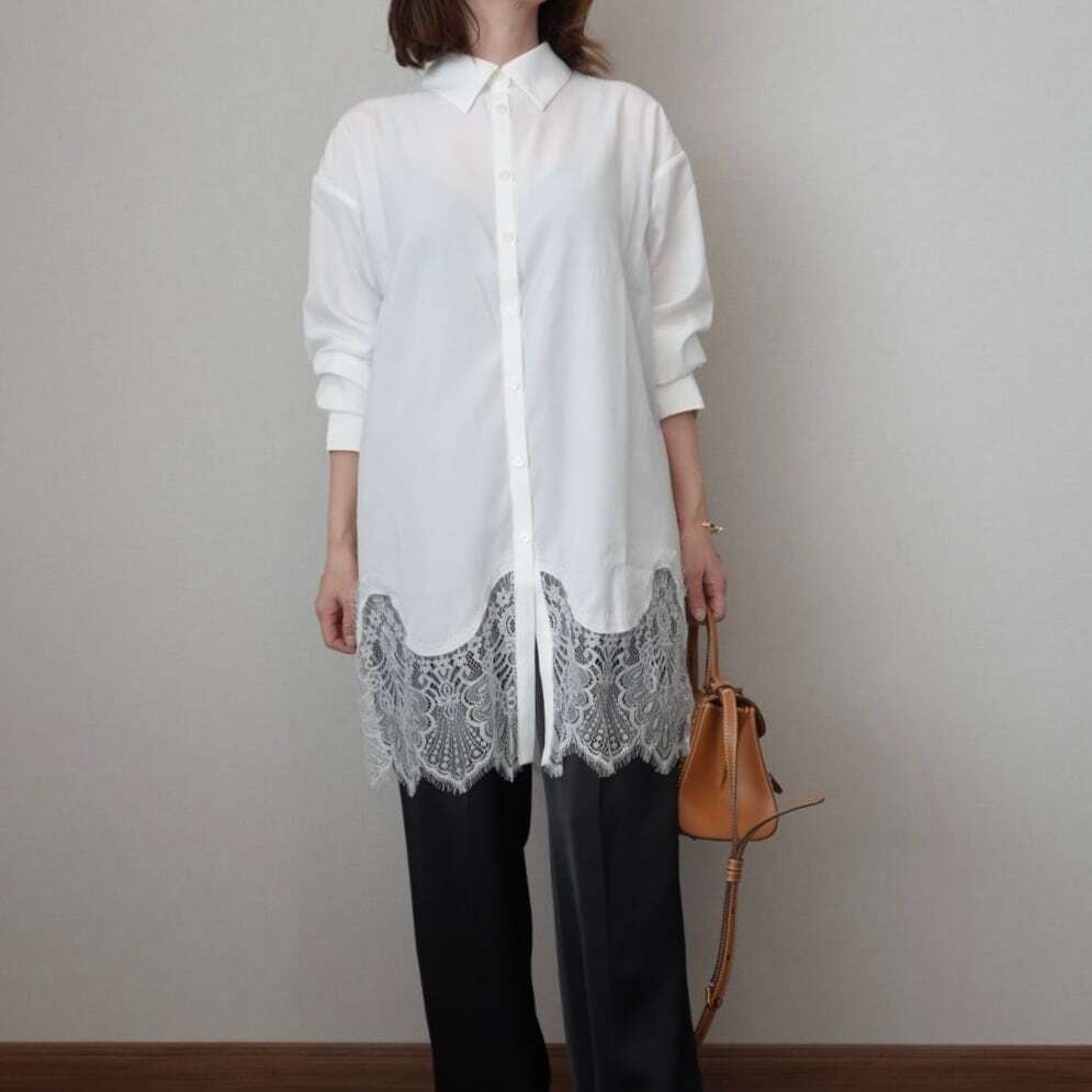 裾レースシャツワンピース 2色