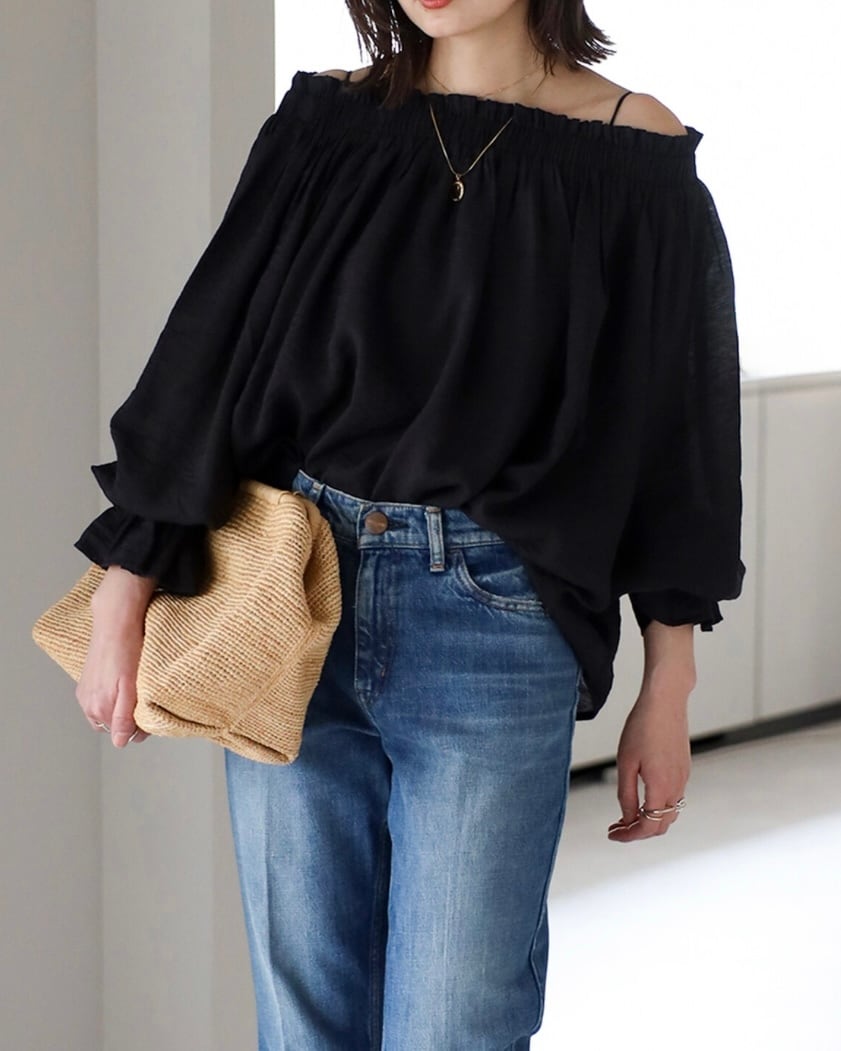 ふんわり透け感で魅せる、オフショルダーブラウスです!