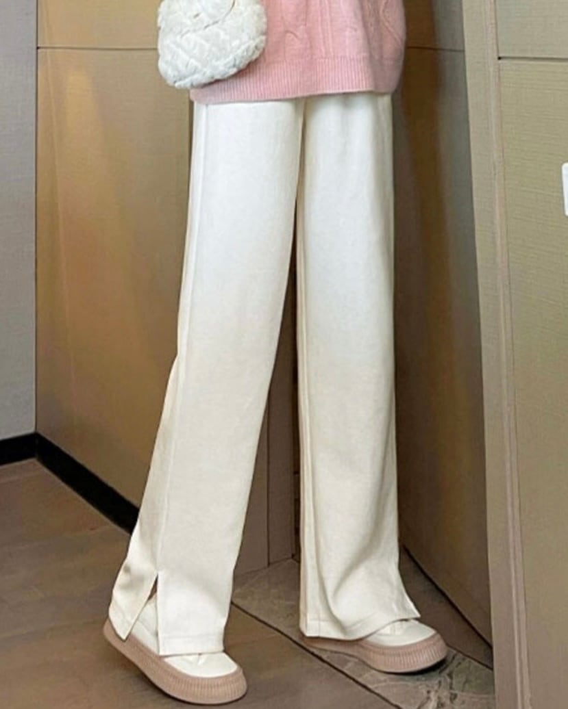 レッグラインを拾わないストレートワイドシルエットで裾のスリットが抜け感をプラスします。