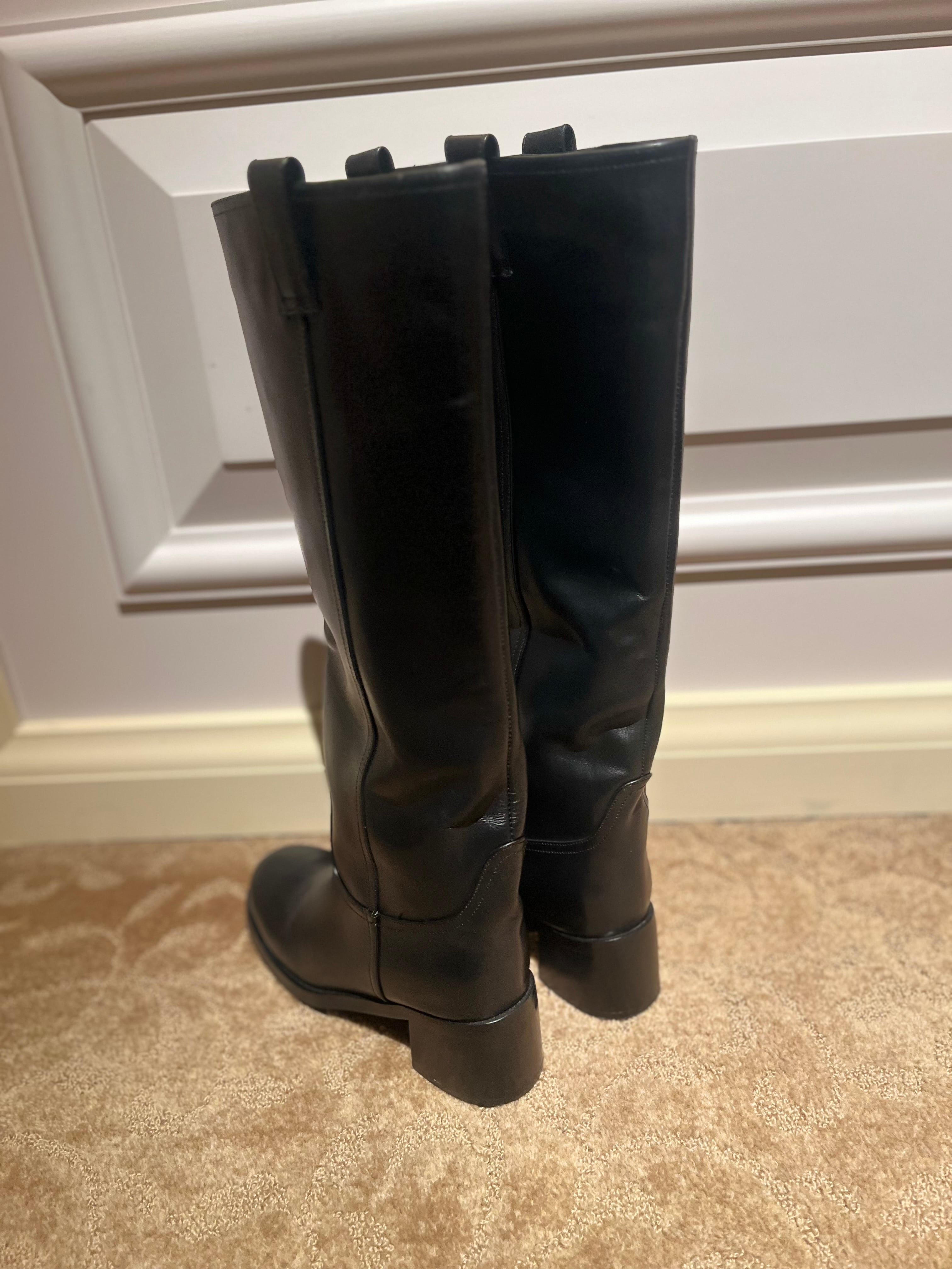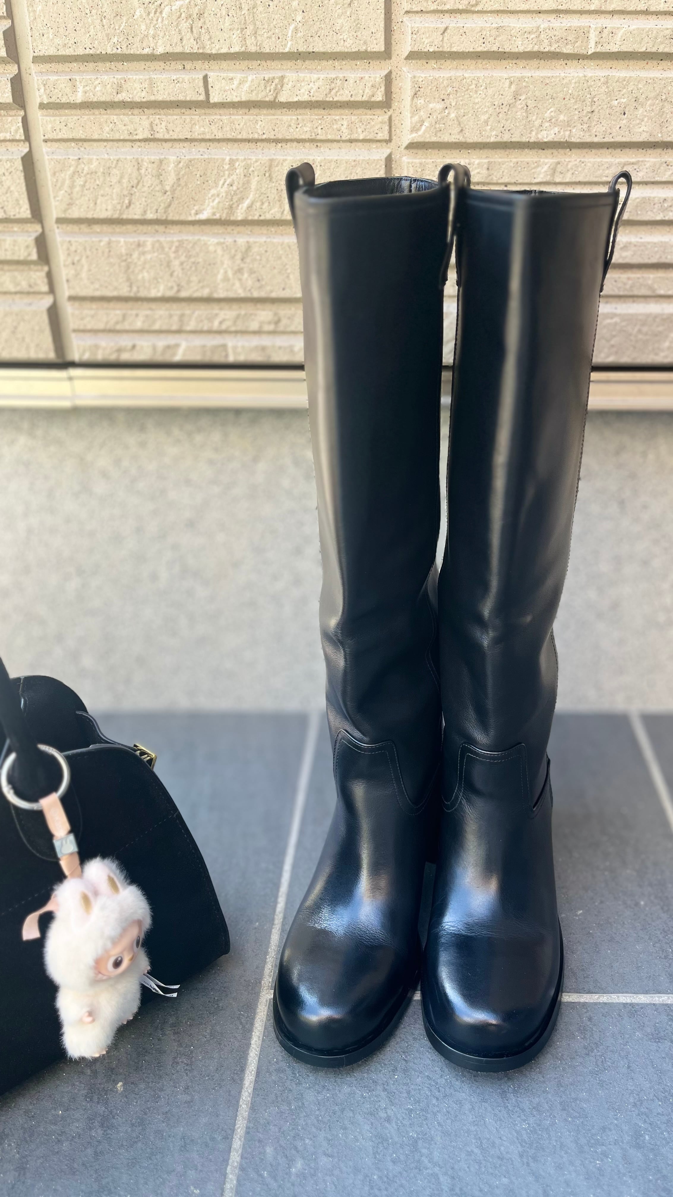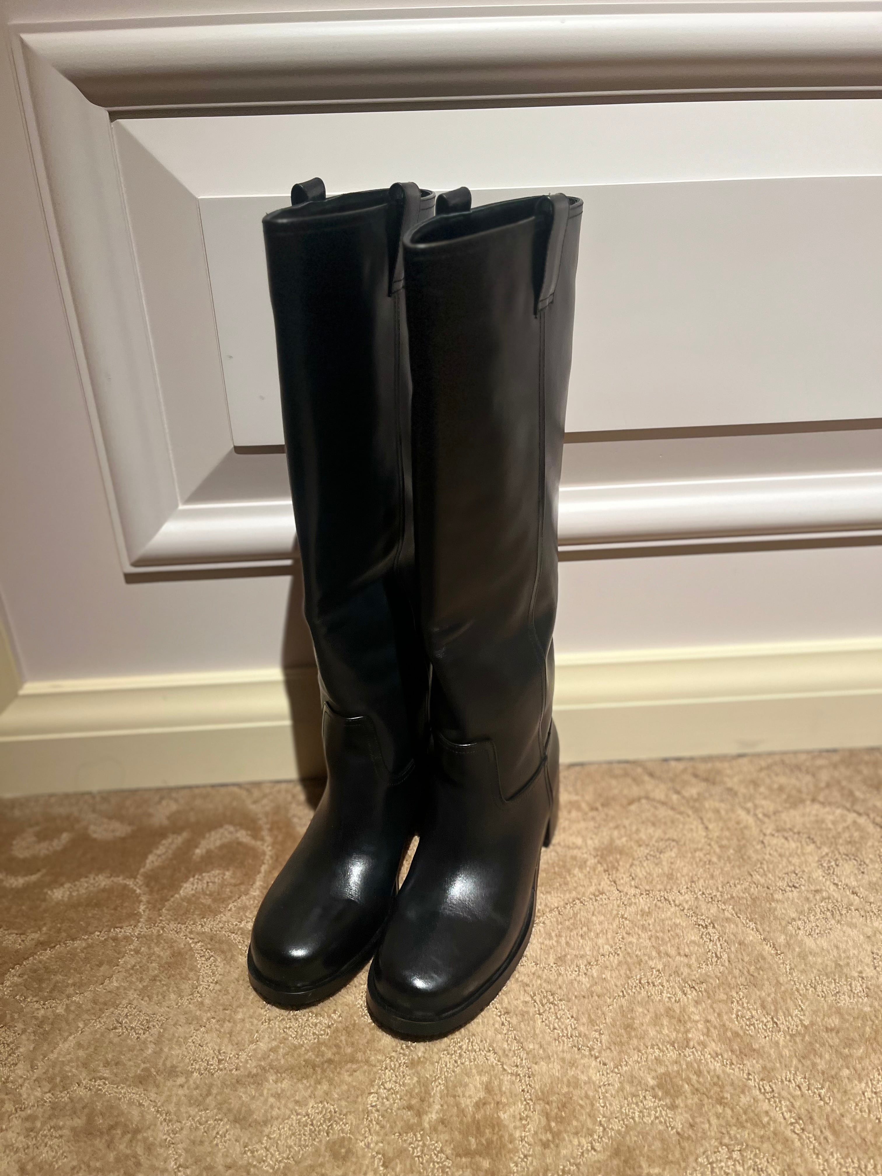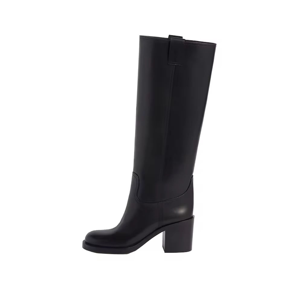 本革ラウンドロングブーツ