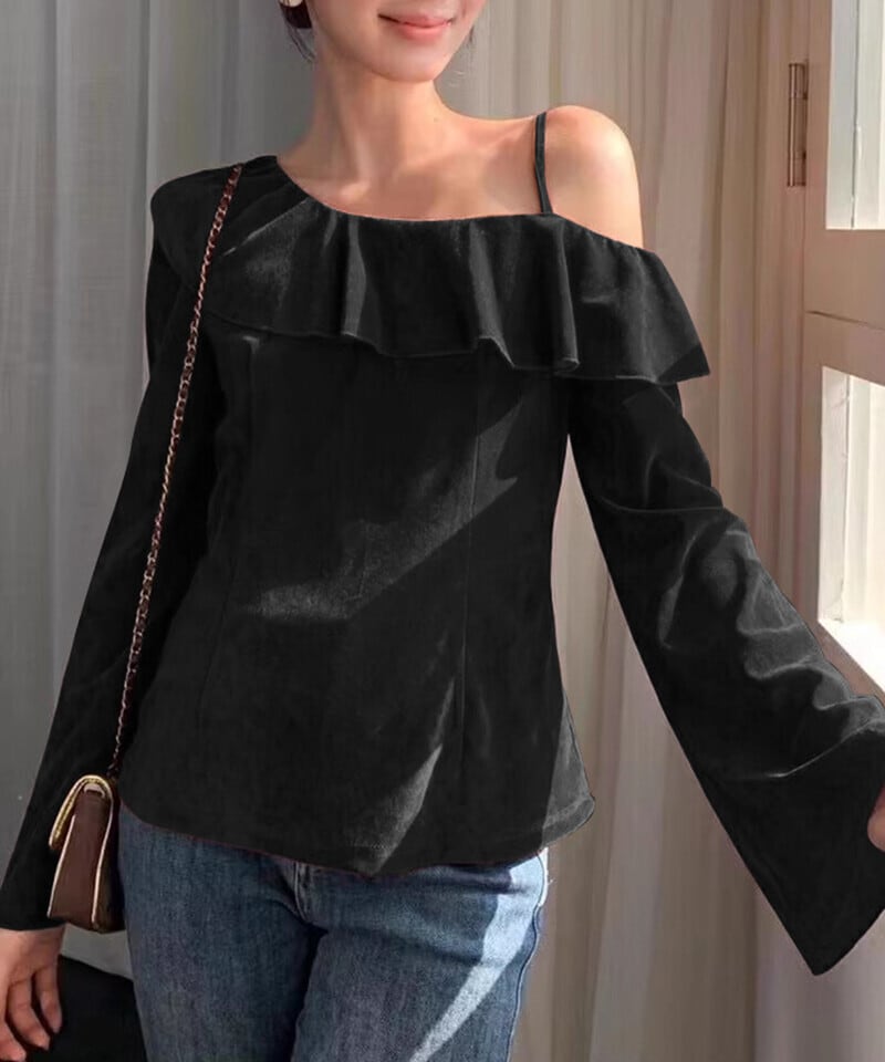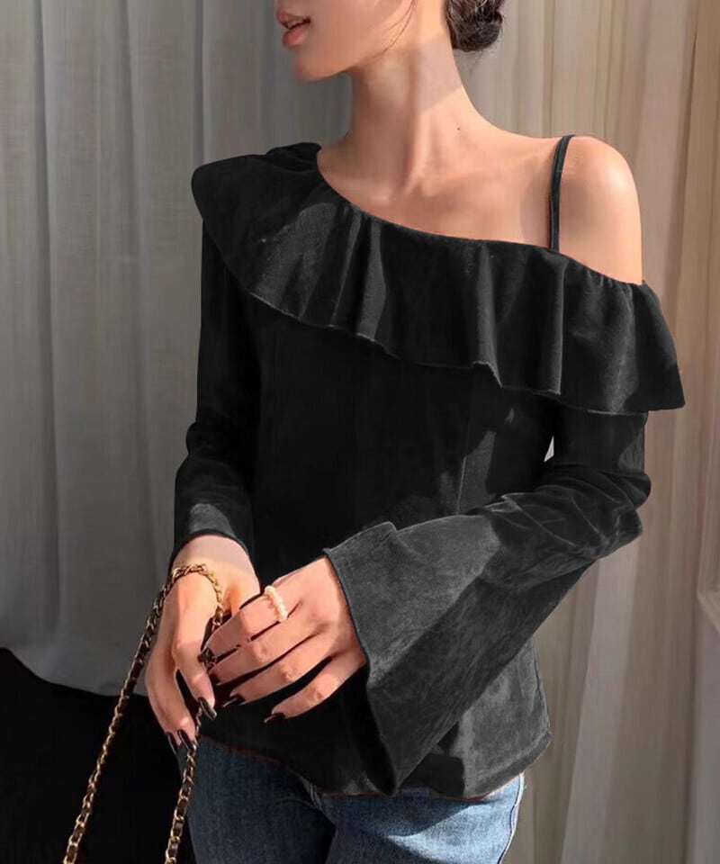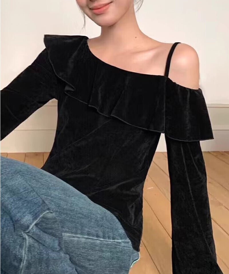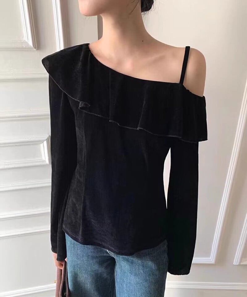 ワンショルフリルベロアトップス