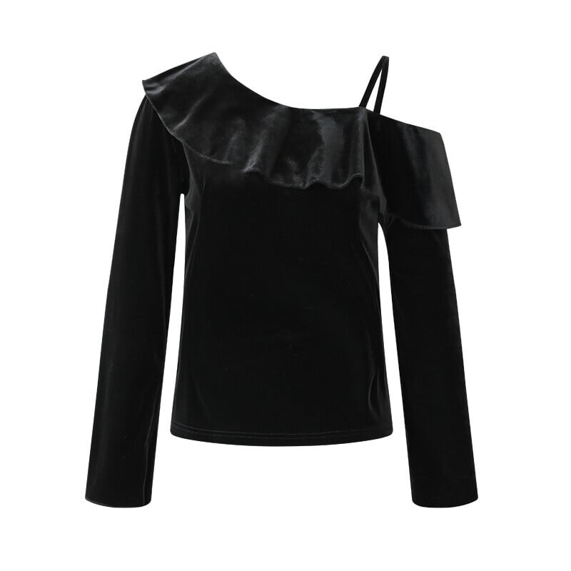 しっとりと光沢感のあるベロア生地にワンショルダーが映える、ベロアトップス。