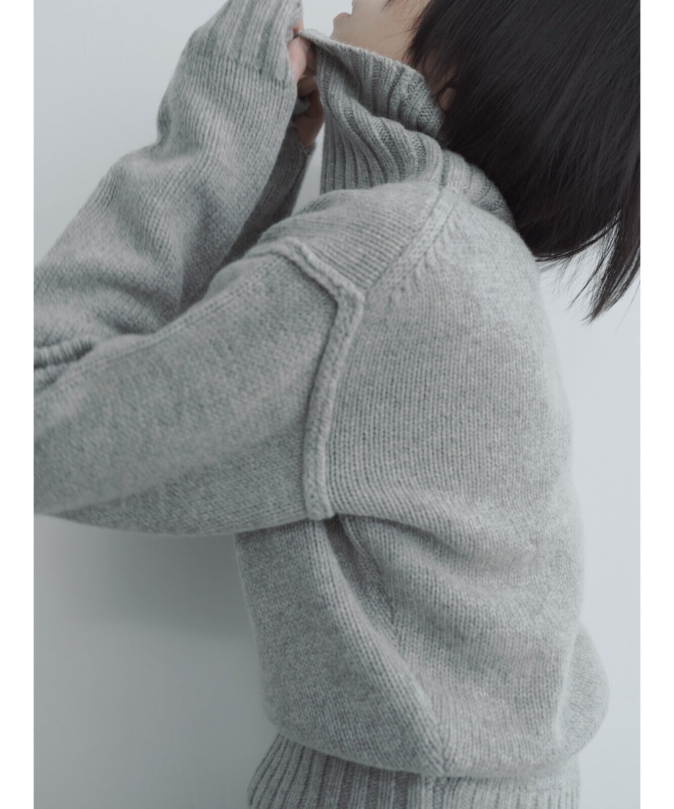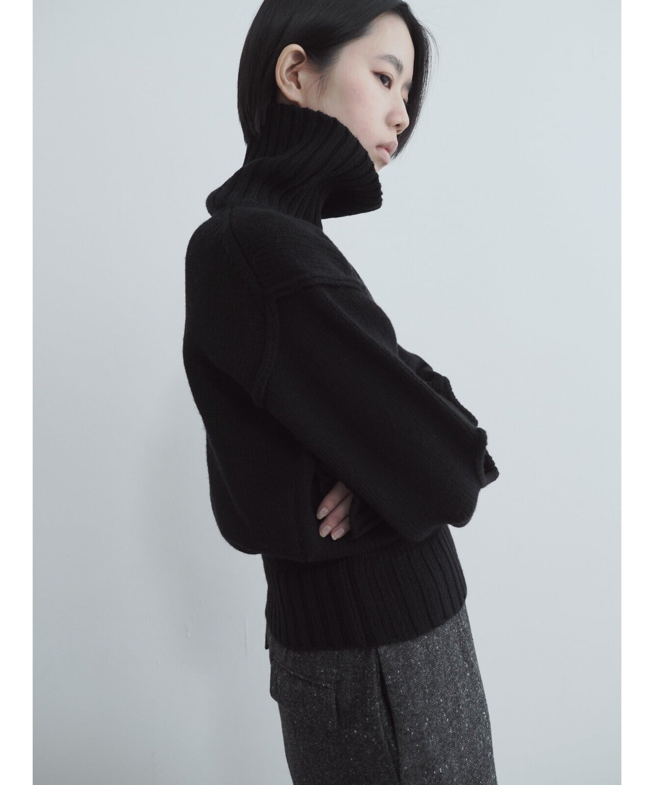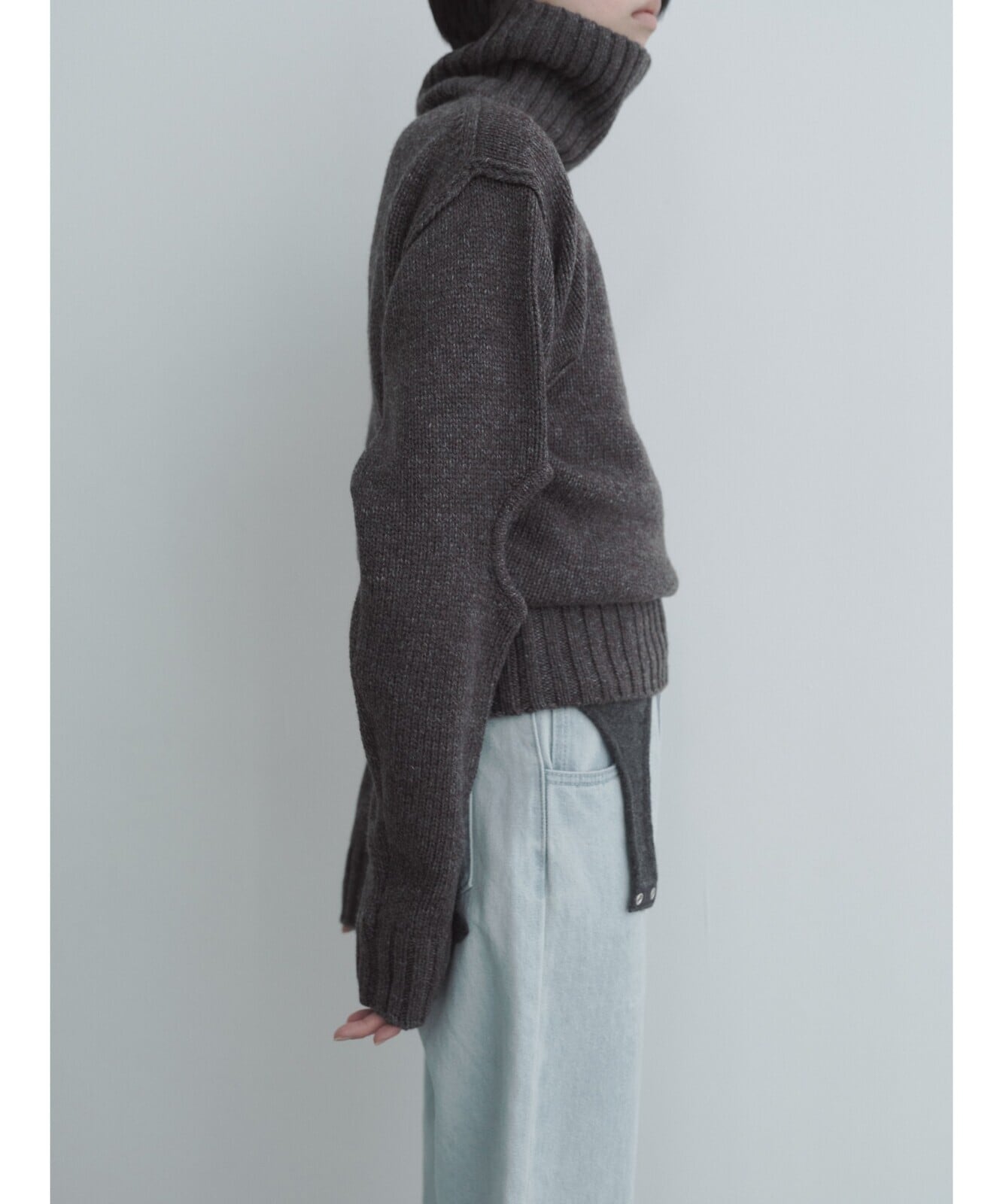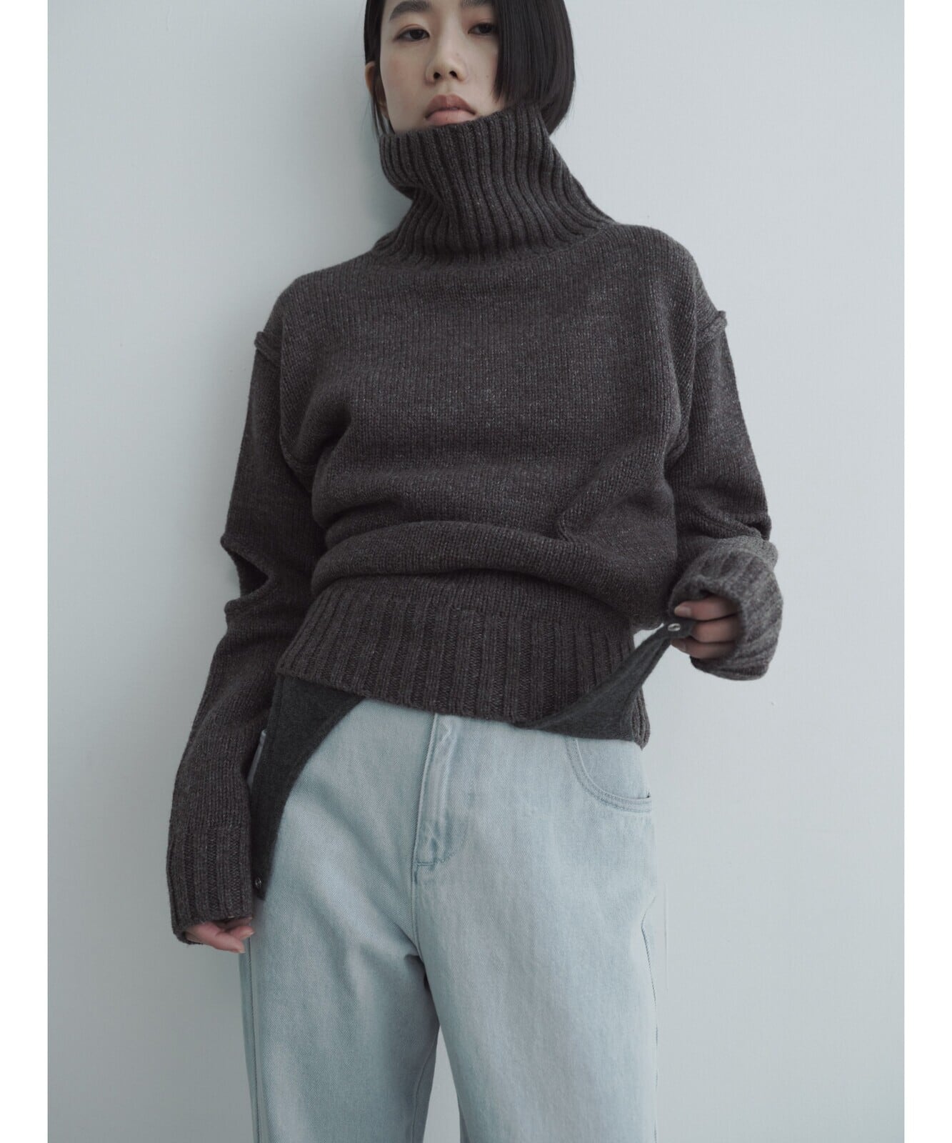 杢調の糸を使用して編んだ 遊び心が入っているデザインのタートルニット。