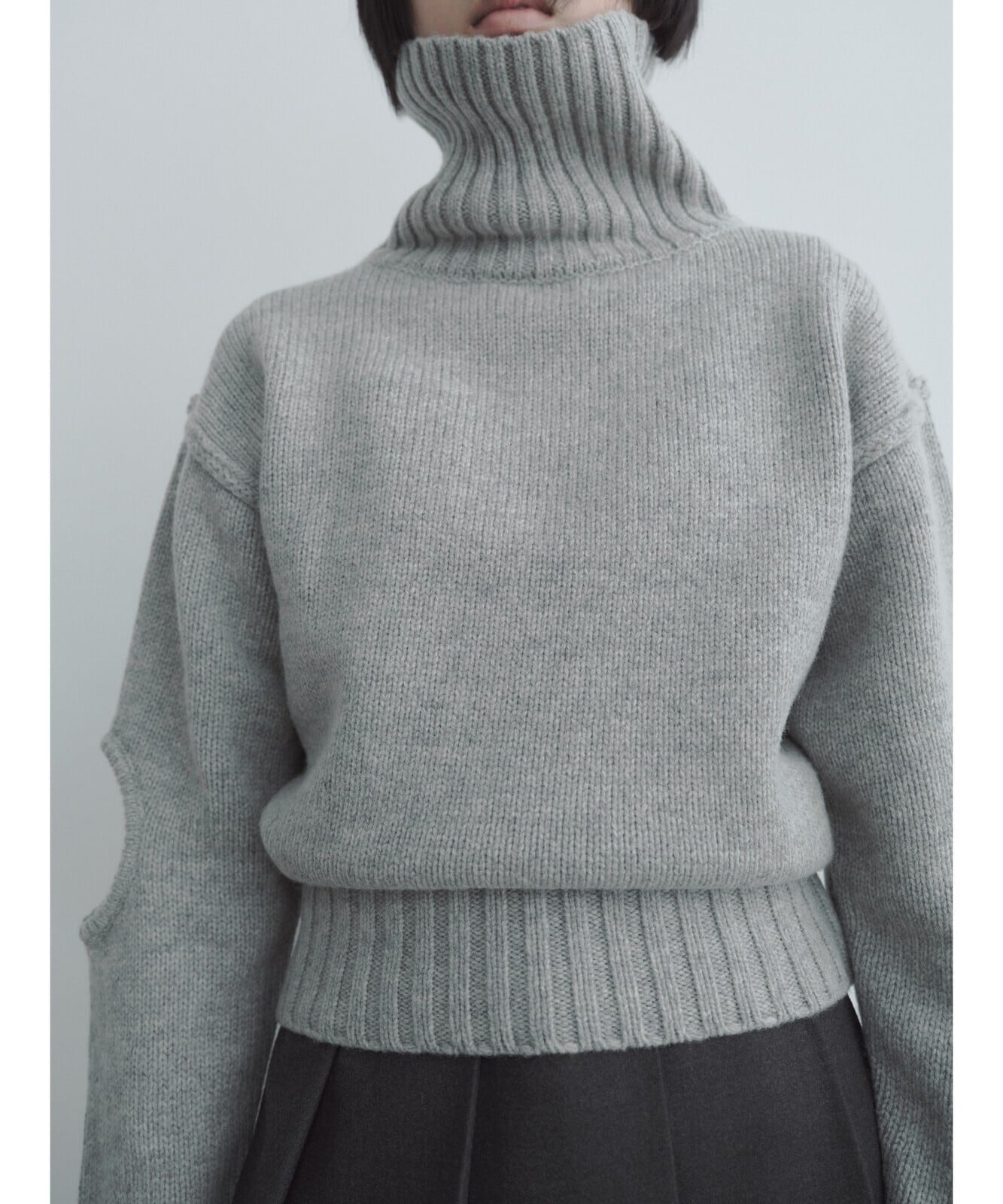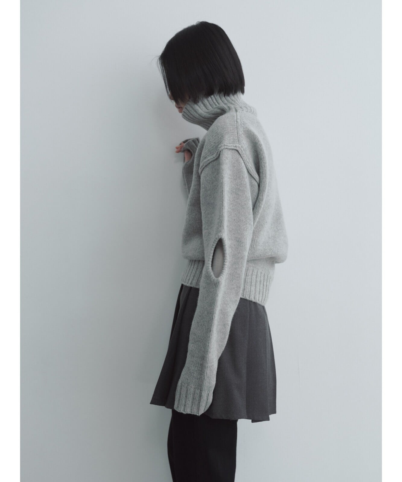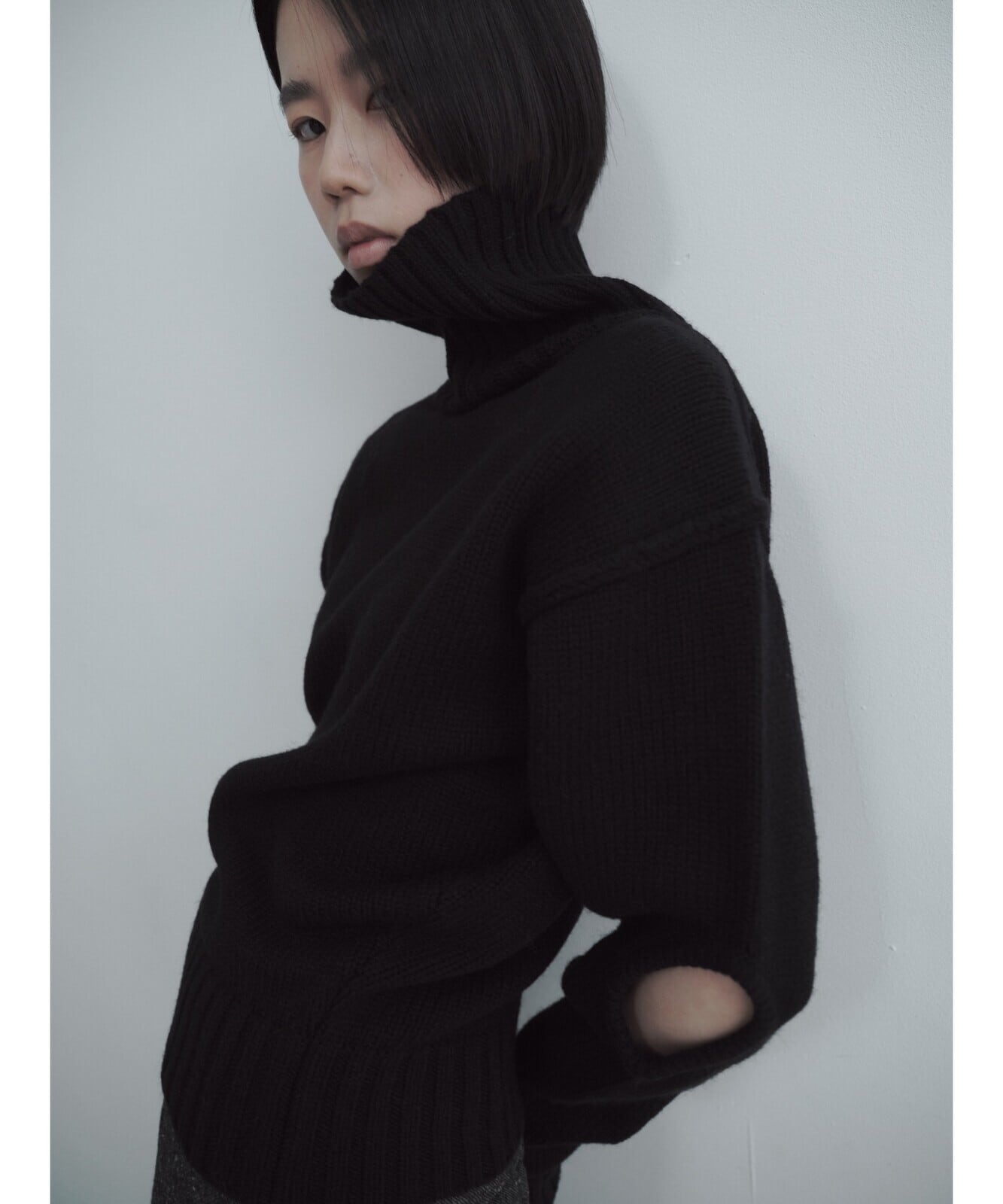杢調の糸を使用して編んだ 遊び心が入っているデザインのタートルニット。