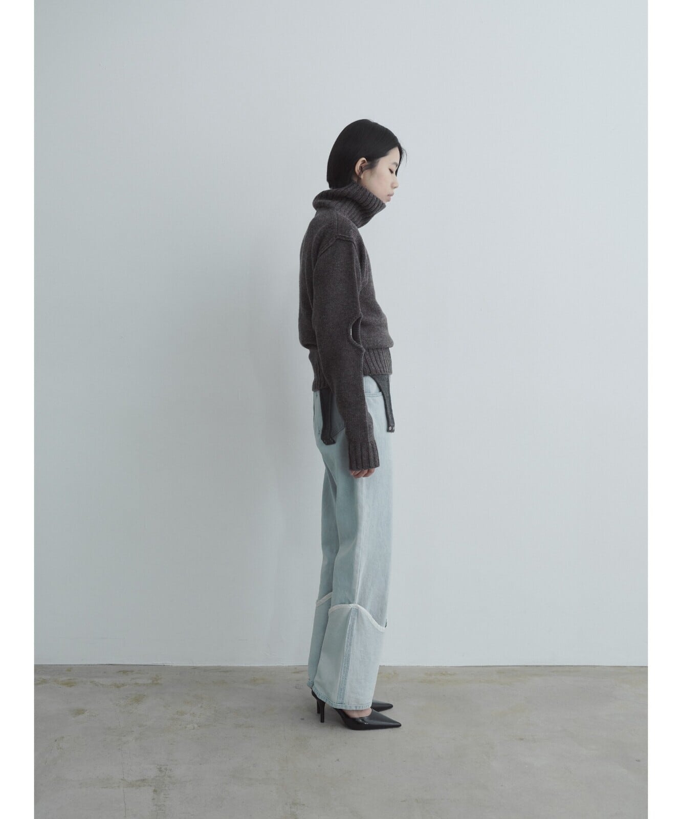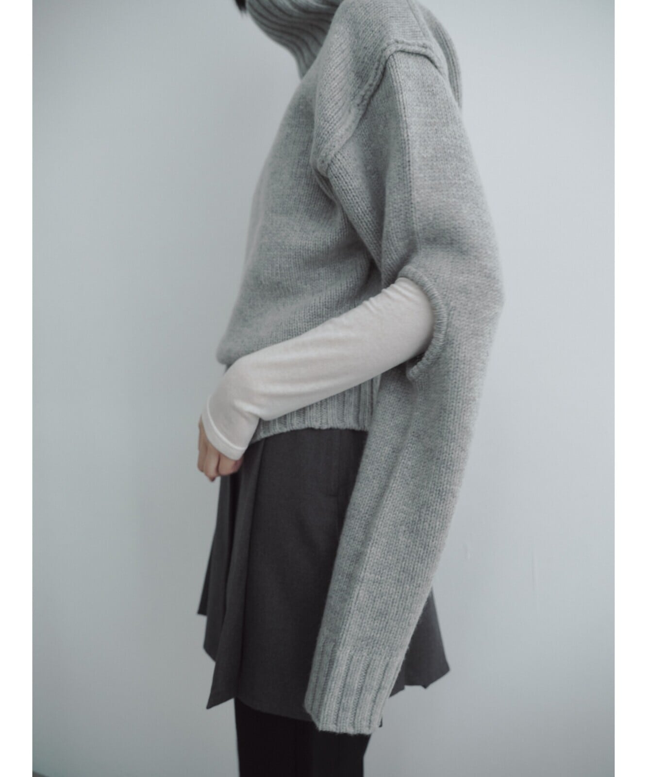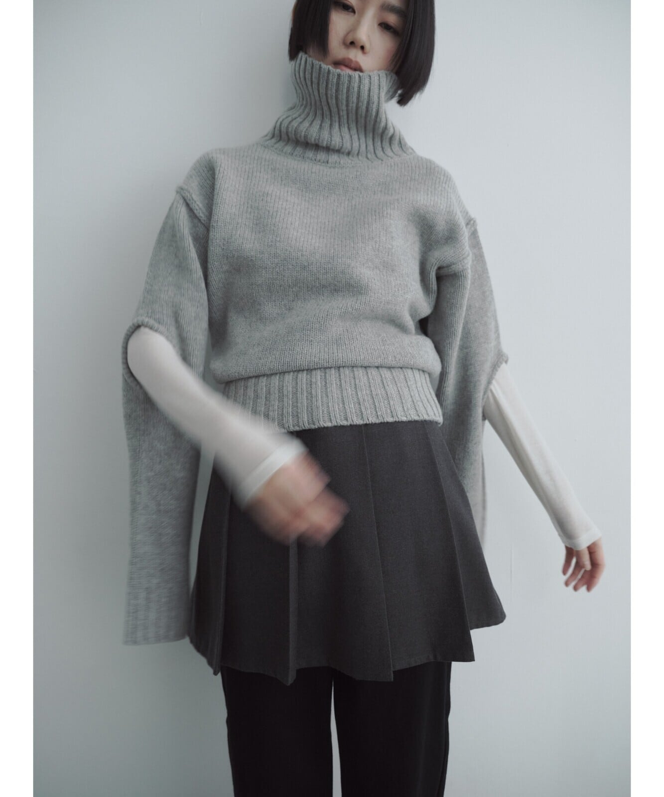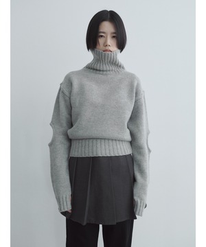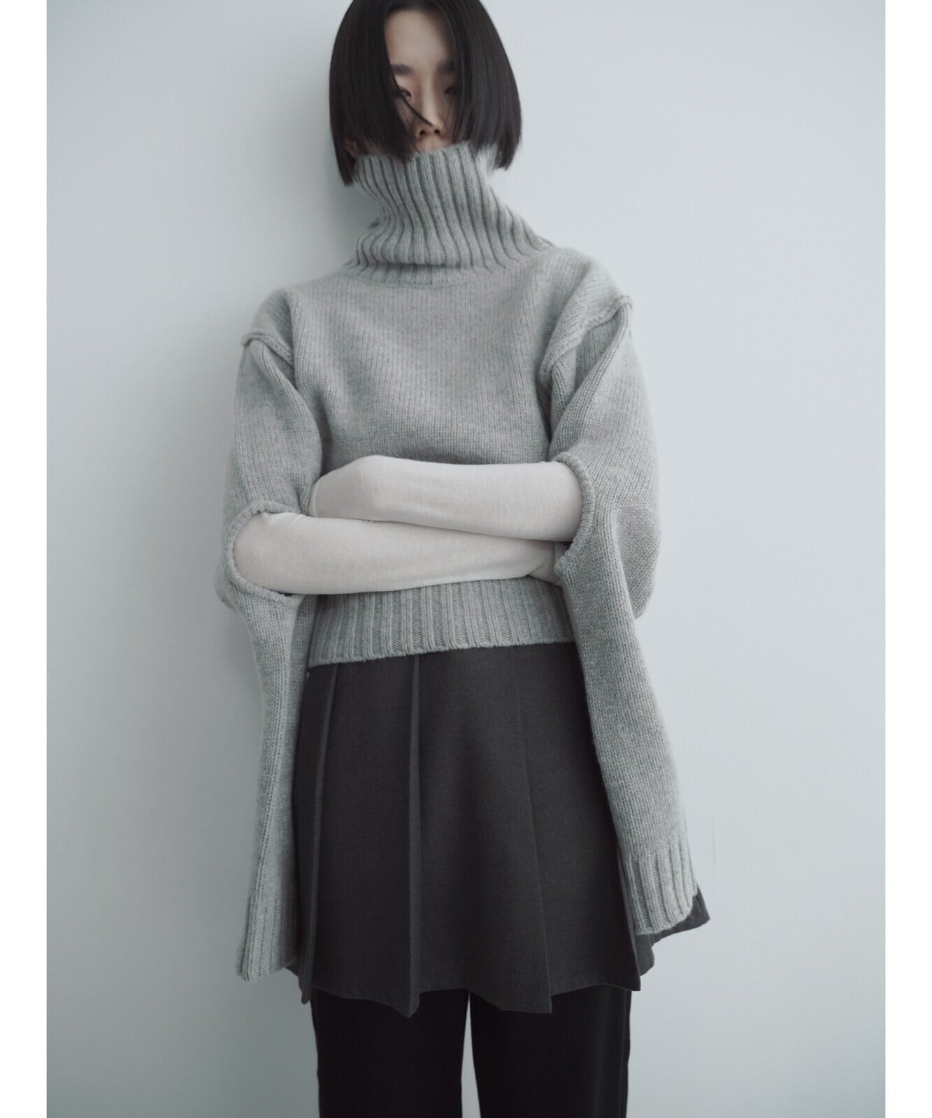杢調の糸を使用して編んだ 遊び心が入っているデザインのタートルニット。