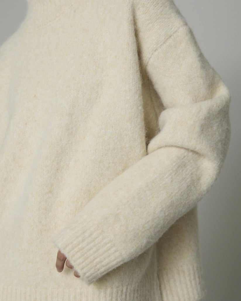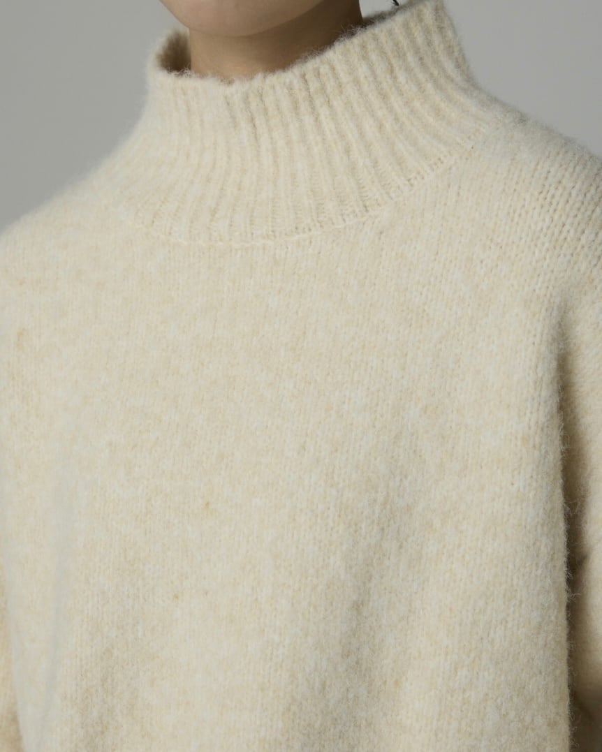 ウールブレンドならではの柔らかさと暖かみが魅力のハイネックニット。