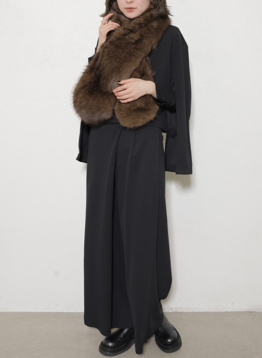 ブラウスやプルオーバーの上だけではなく、アウターの上にもオンで来て◎