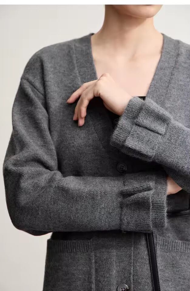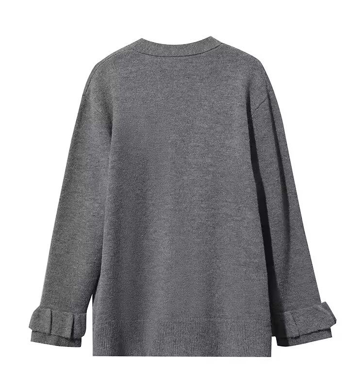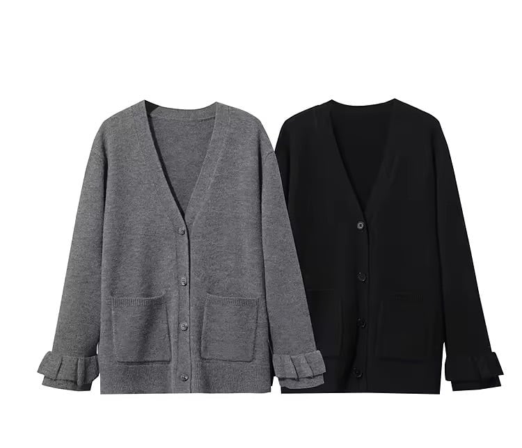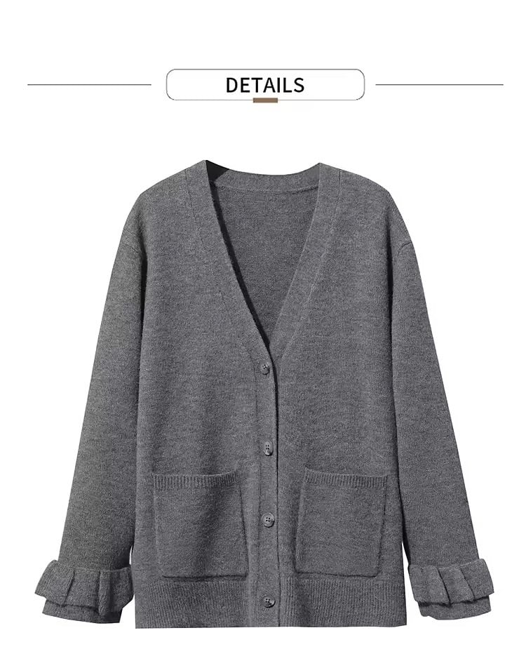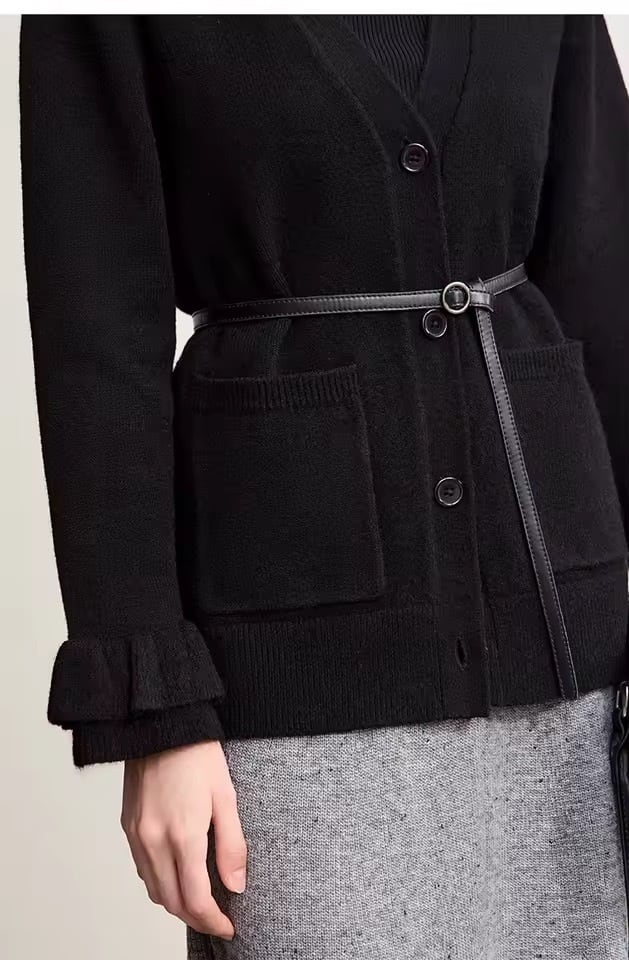 袖口のフリルデザインがさりげなく愛らしさを添える上質ウール混のカーディガンです!