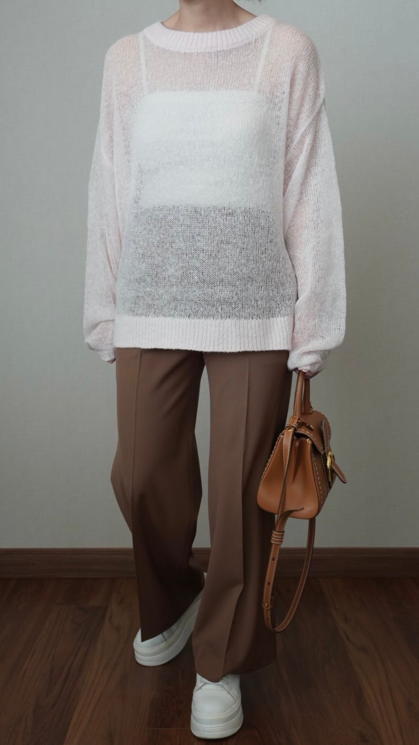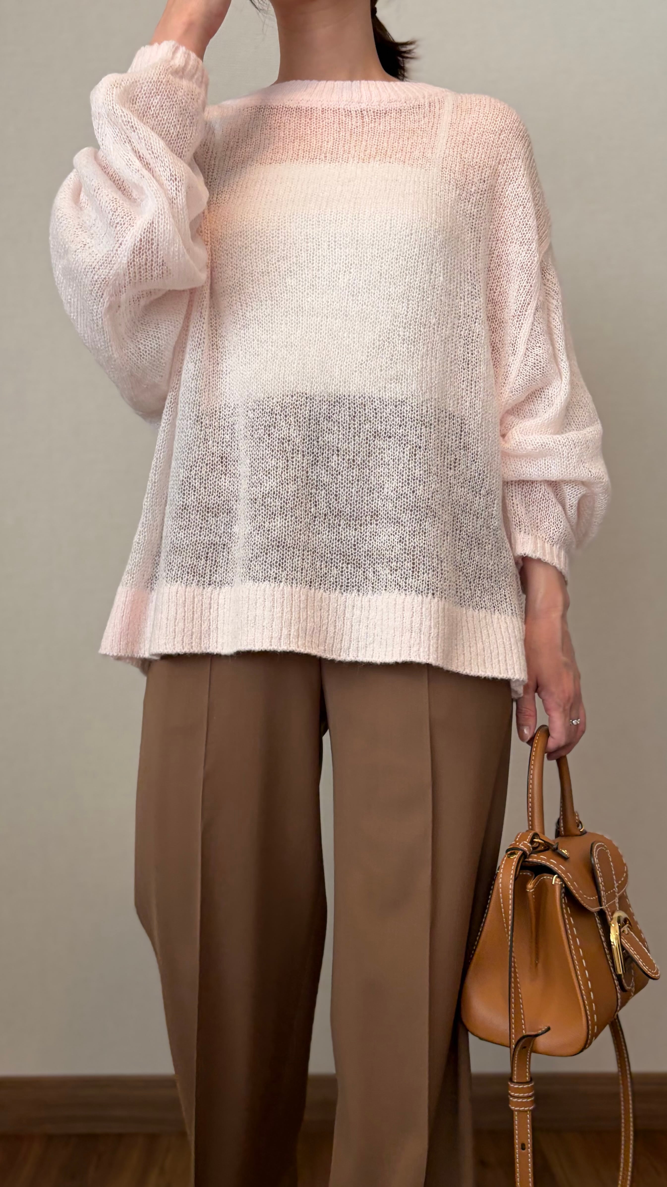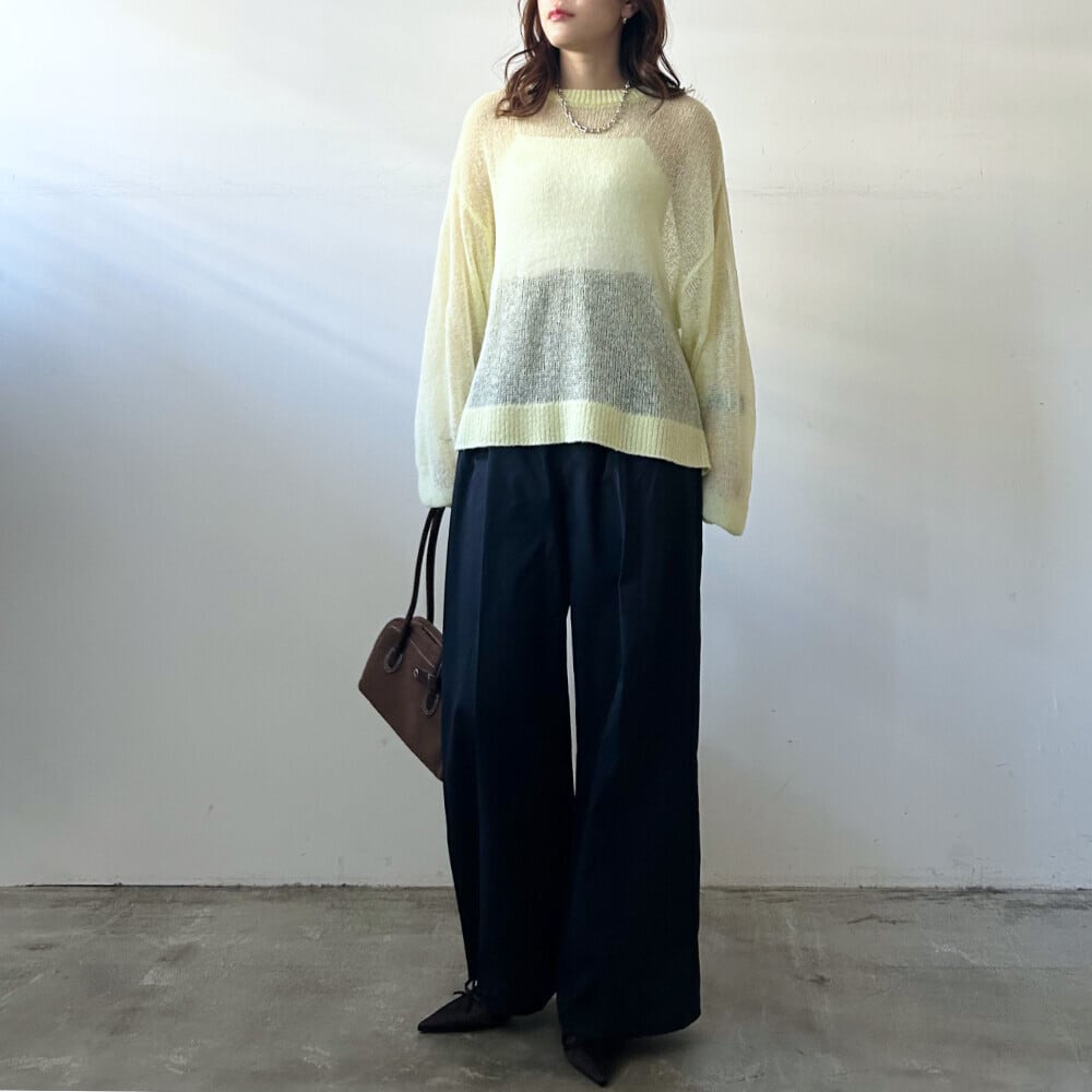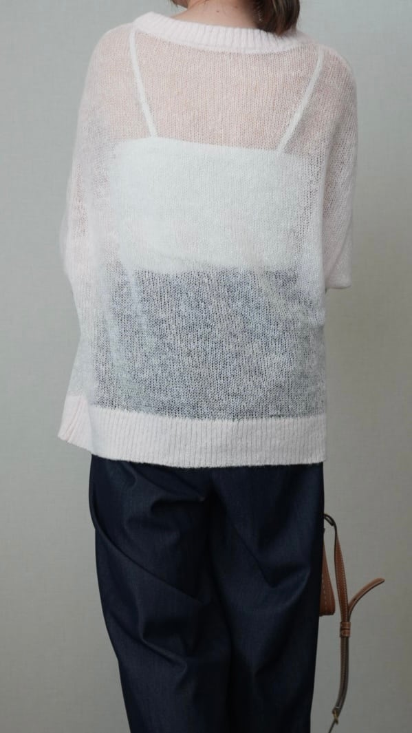 ふんわりとしたモヘアタッチ素材で仕立てたシアーニット、