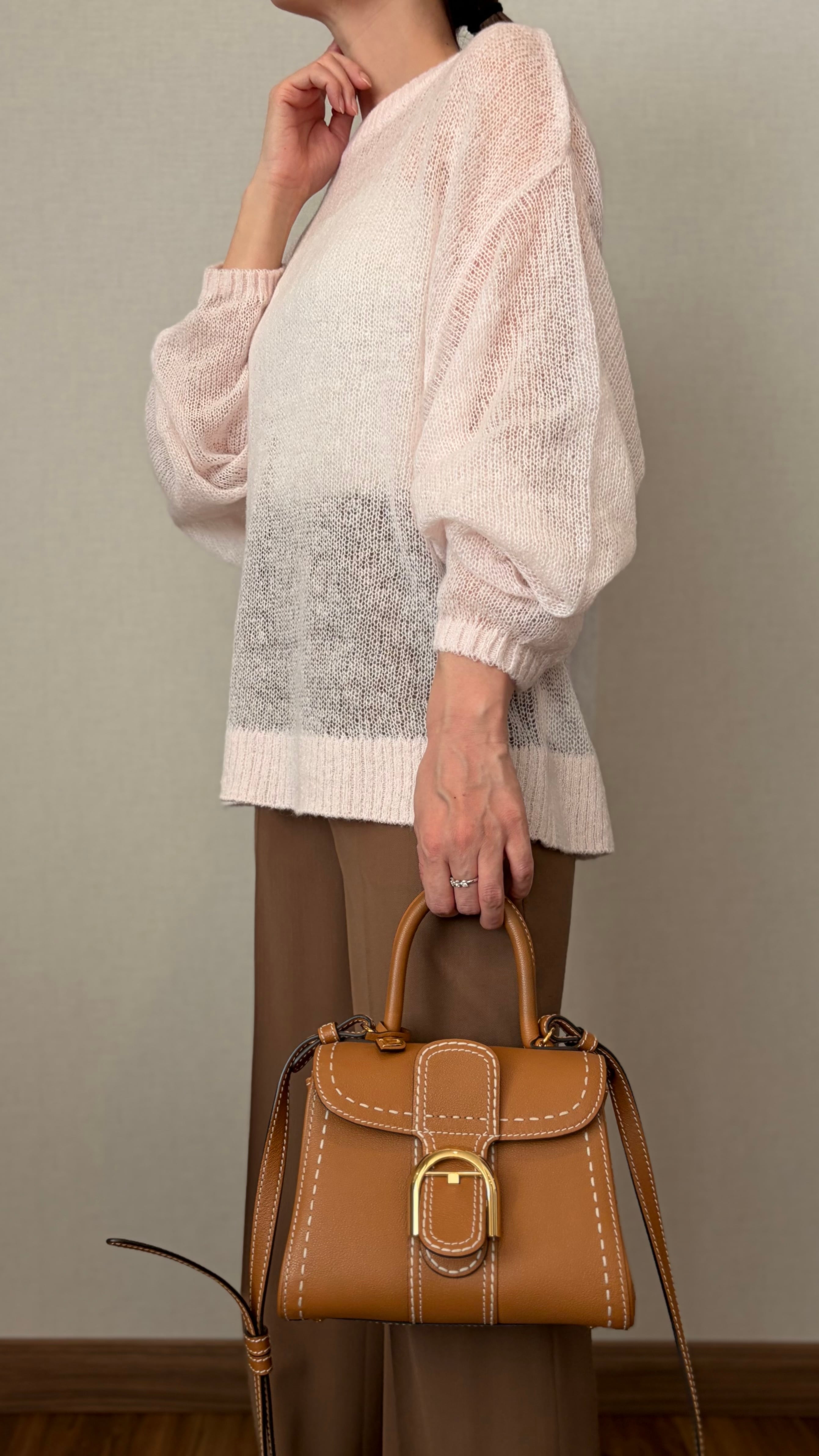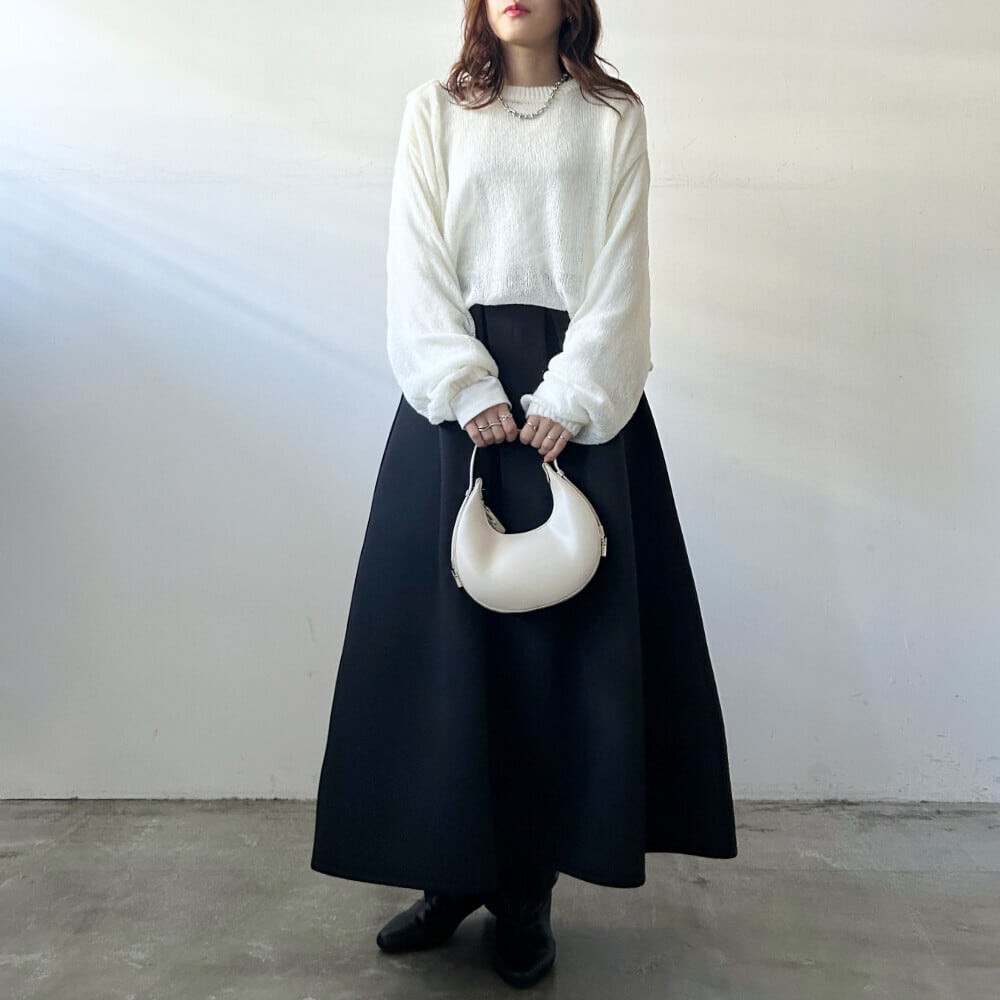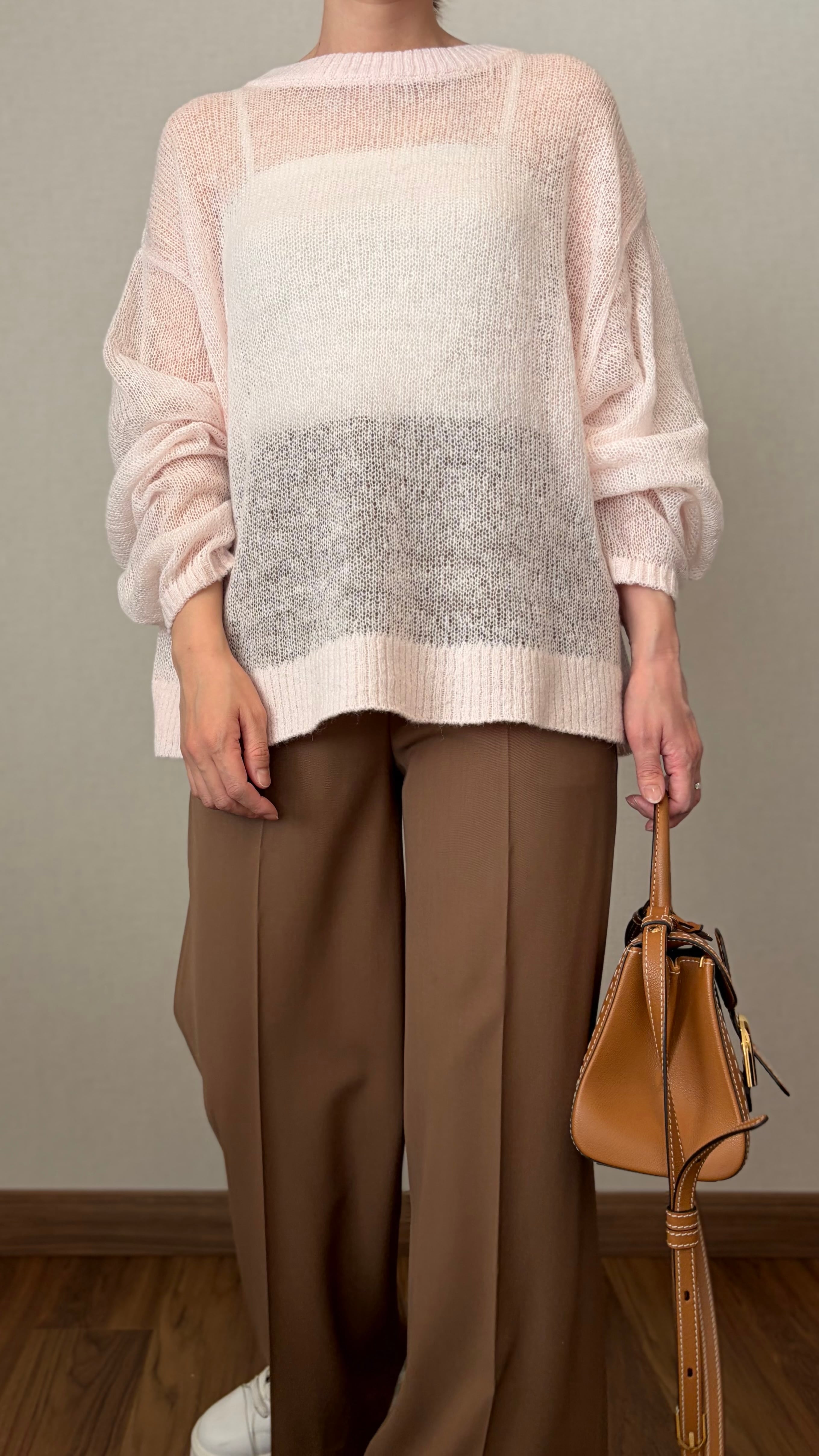 ふんわりとしたモヘアタッチ素材で仕立てたシアーニット、