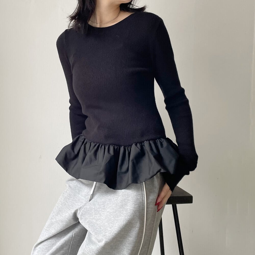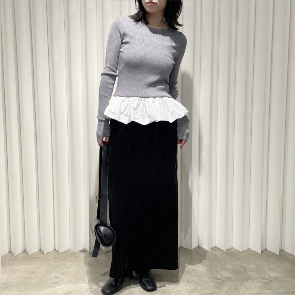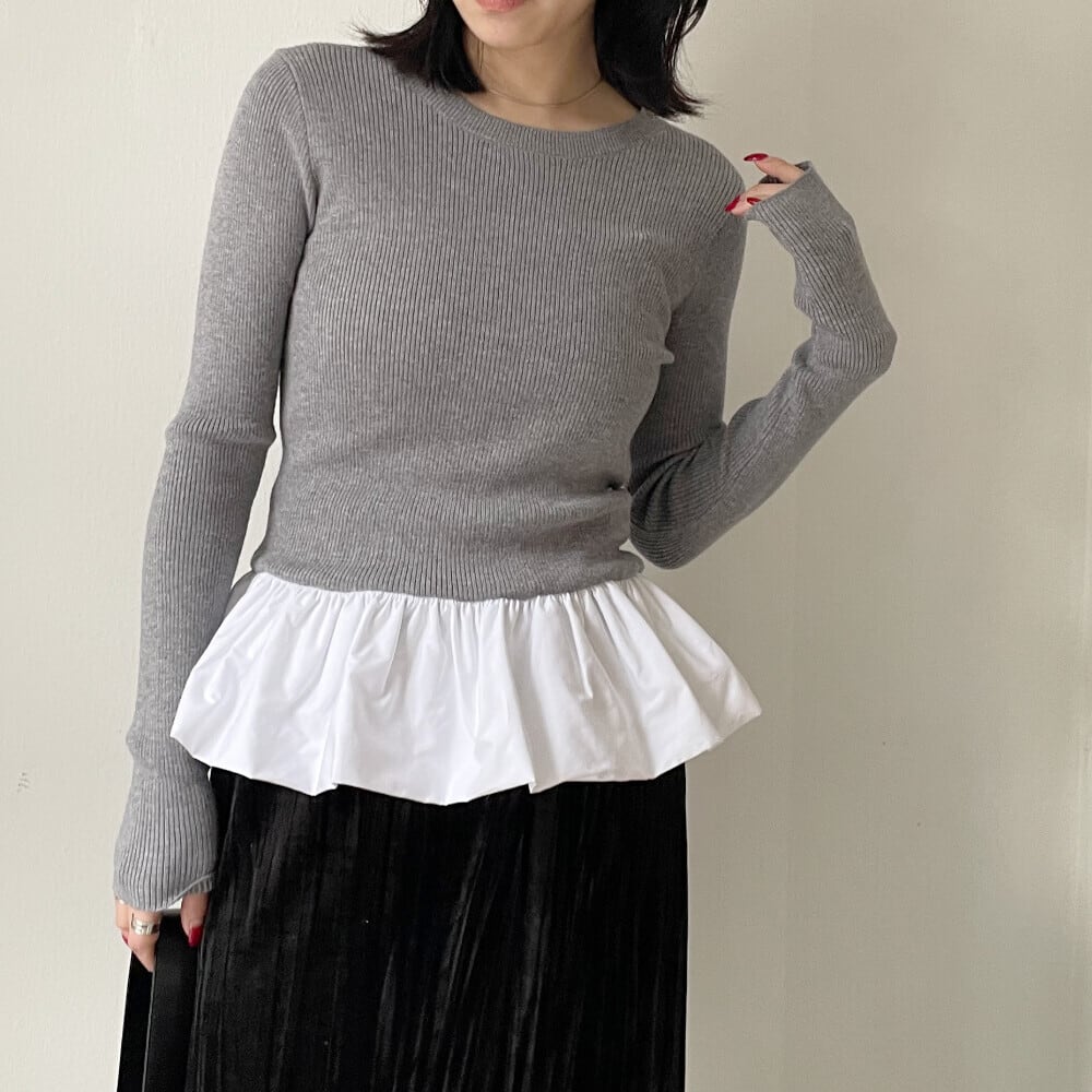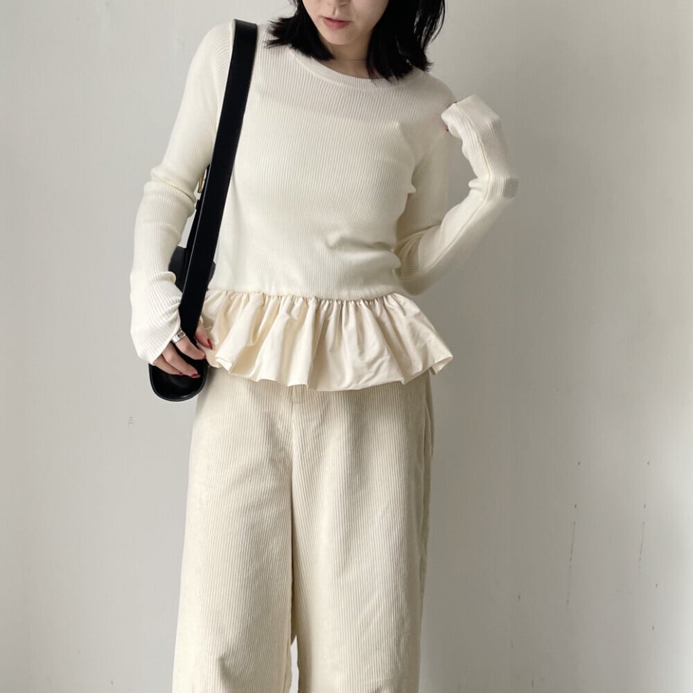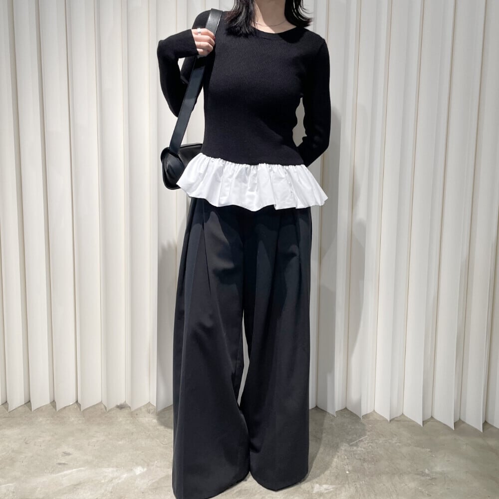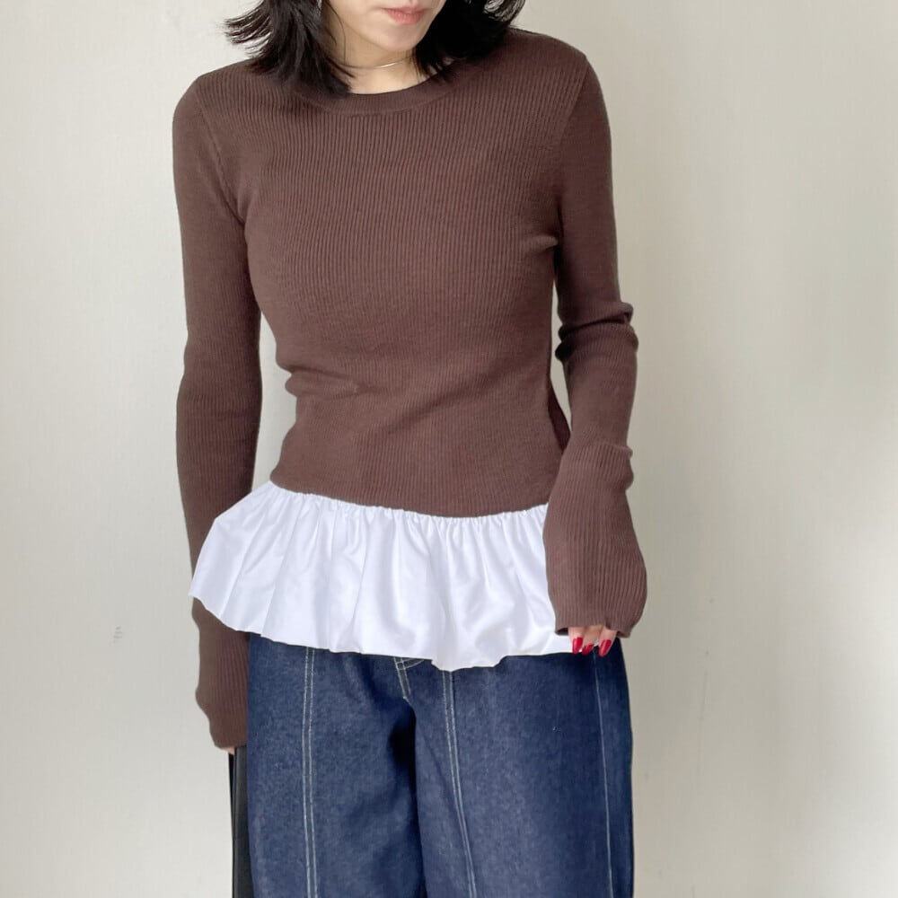 トレンドライクなバルーンの裾フリルがポイントの異素材コンビプルオーバーです!