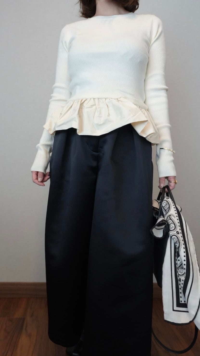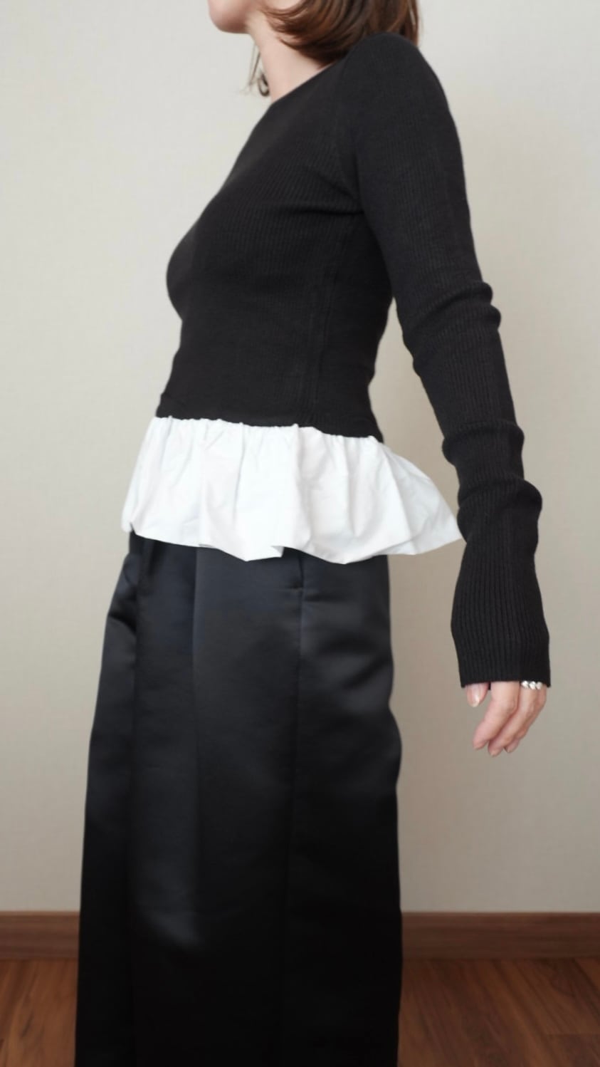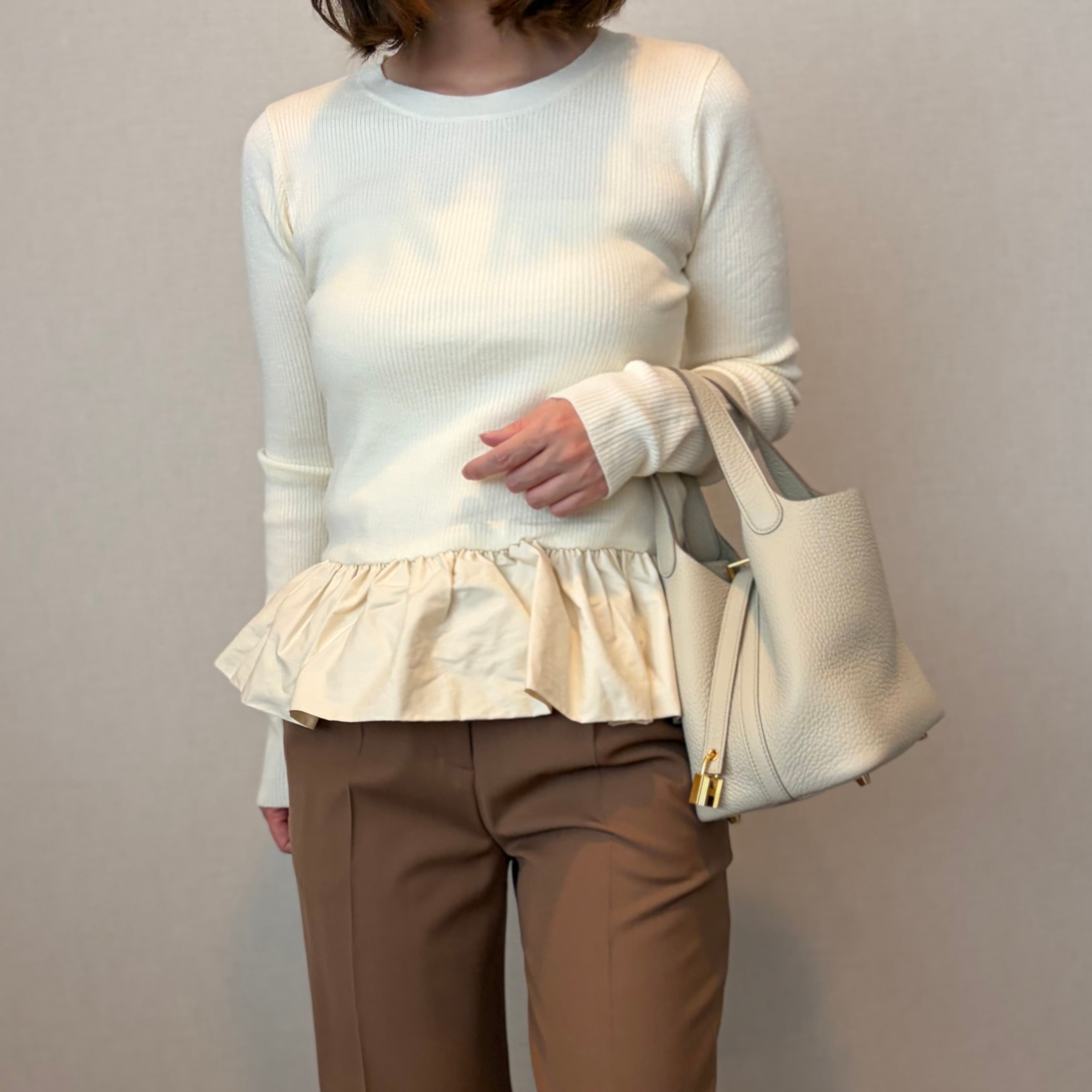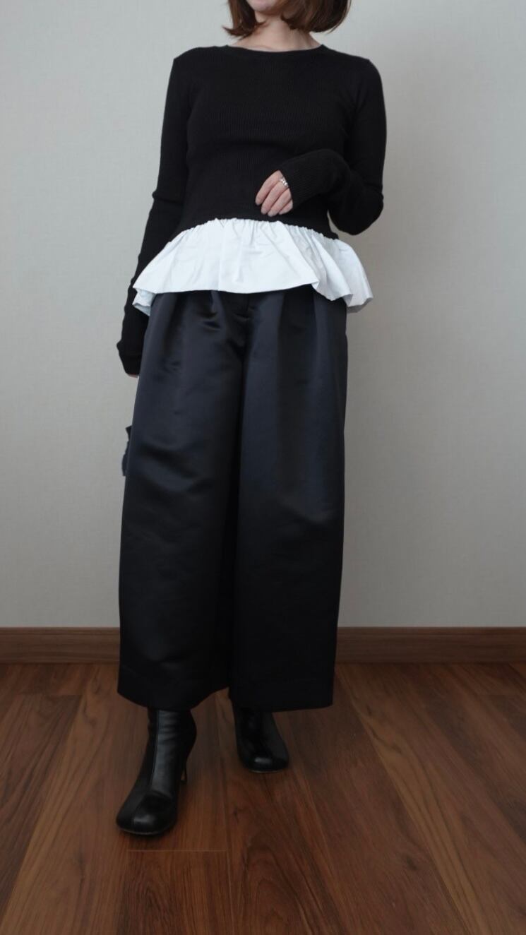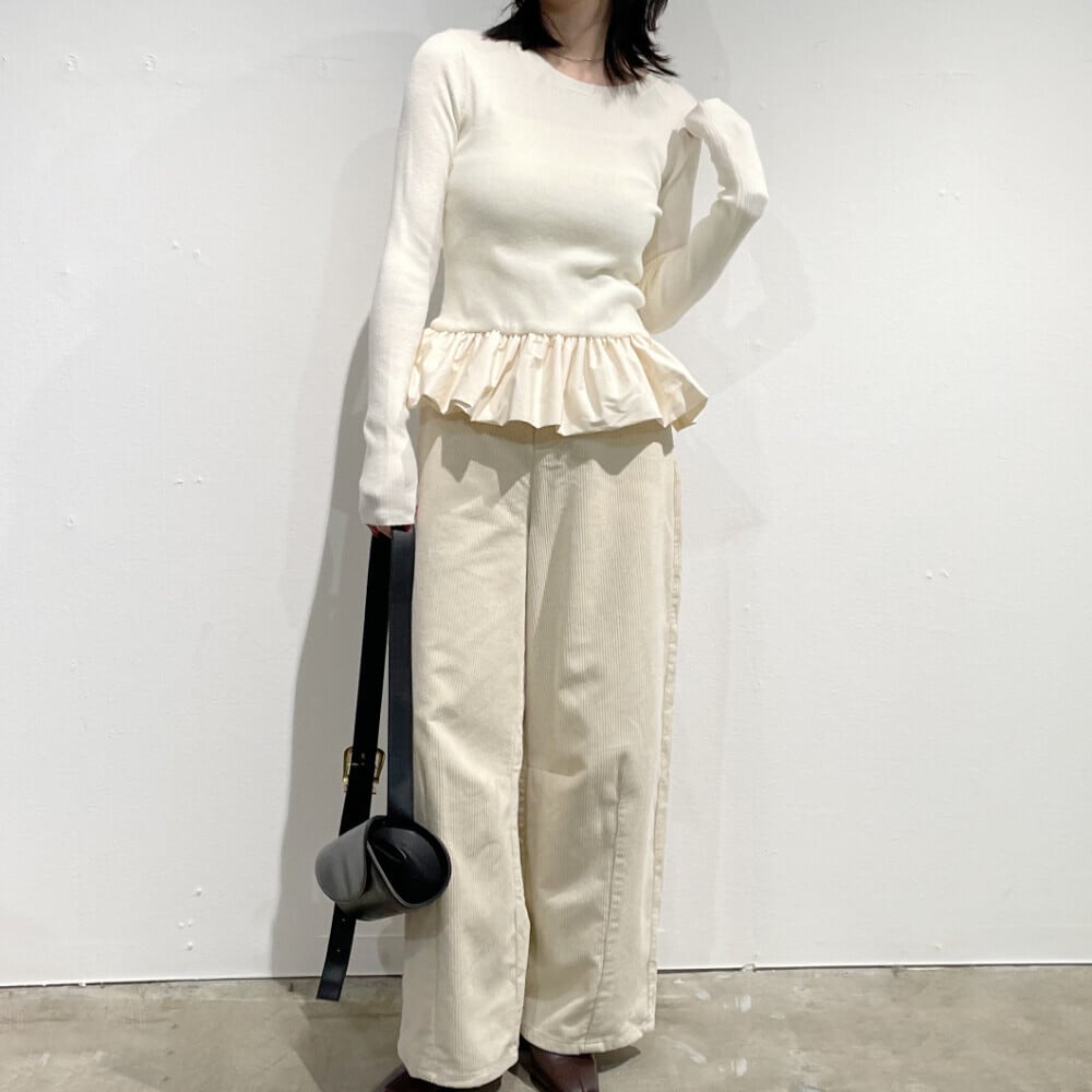 トレンドライクなバルーンの裾フリルがポイントの異素材コンビプルオーバーです!