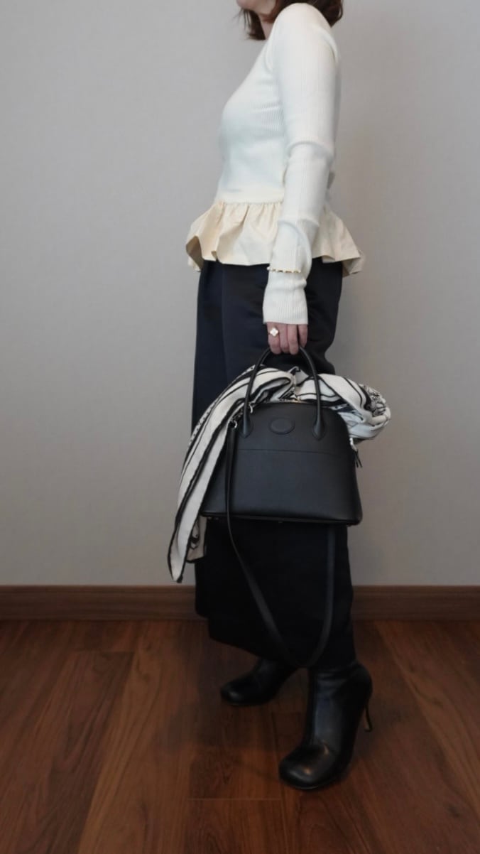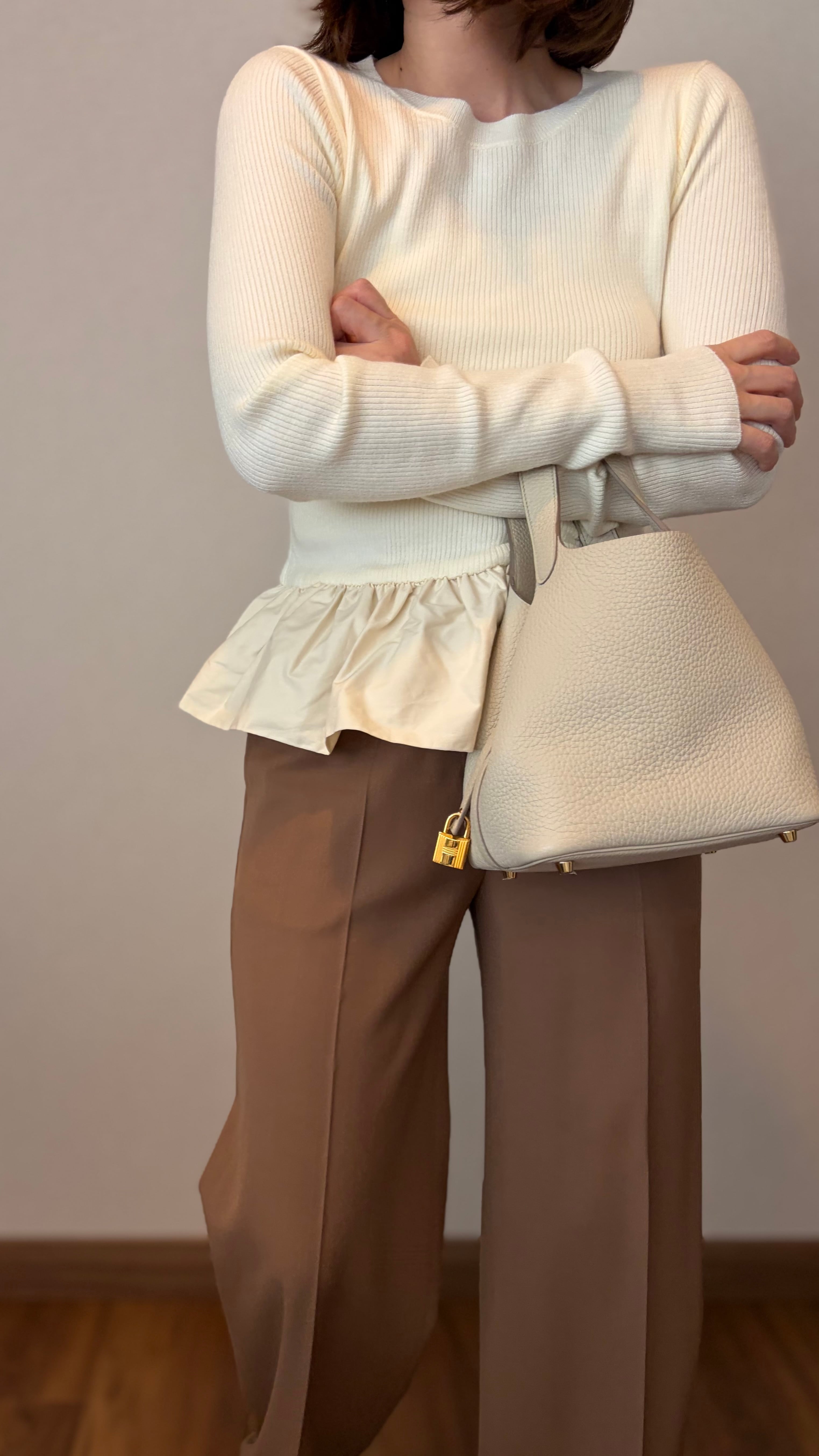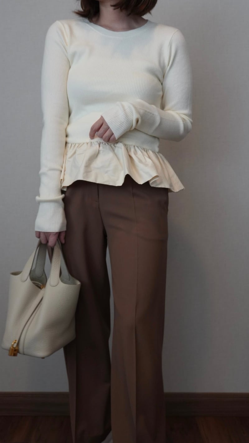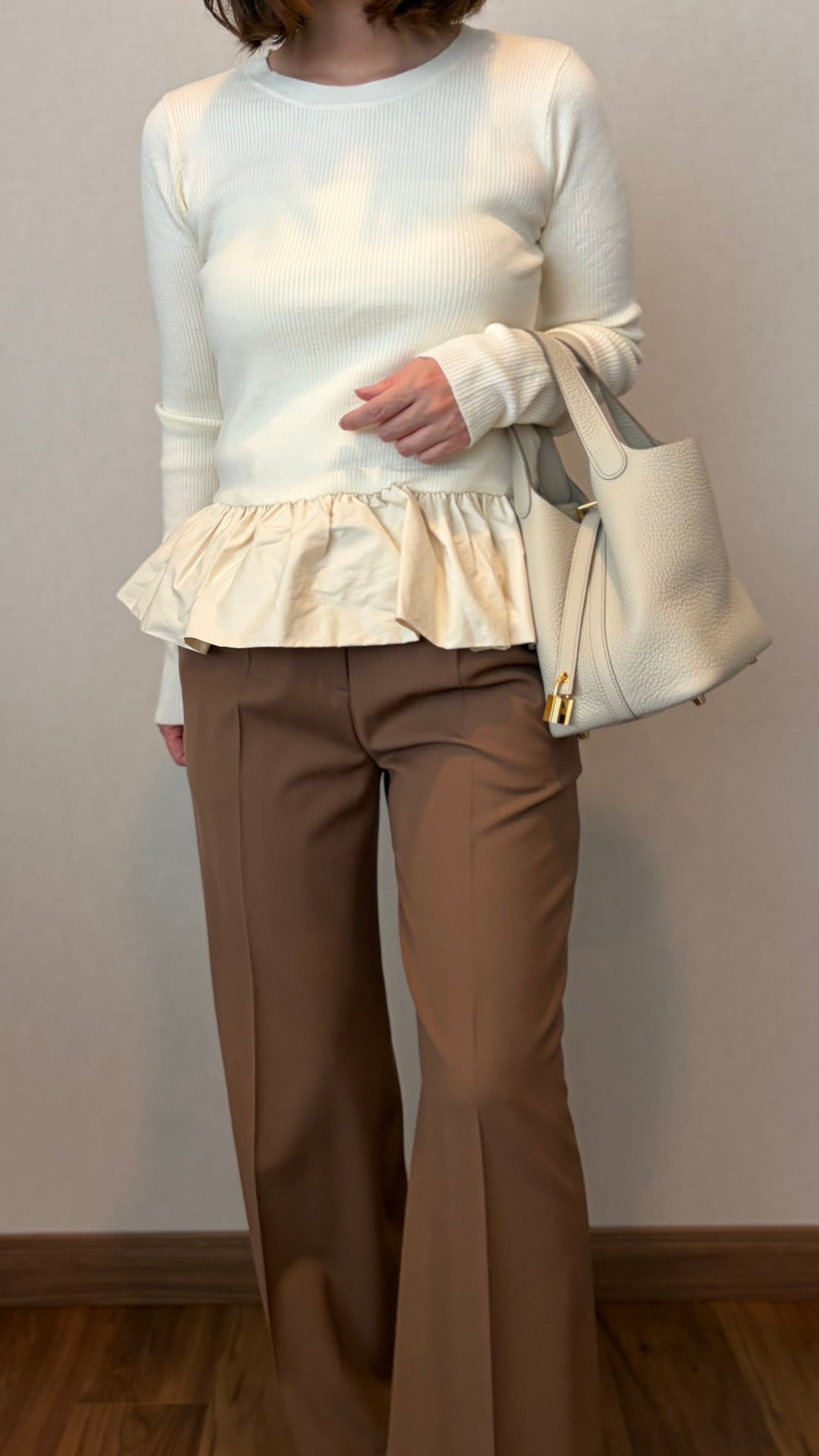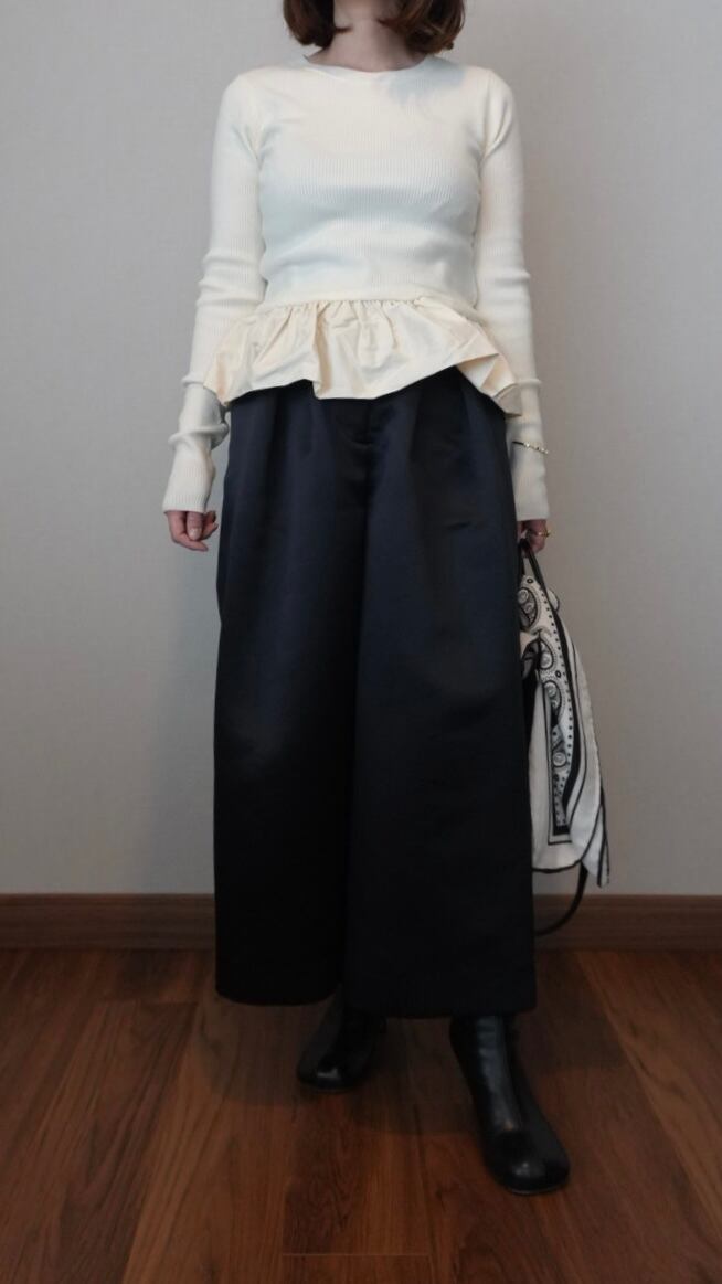 トレンドライクなバルーンの裾フリルがポイントの異素材コンビプルオーバーです!
