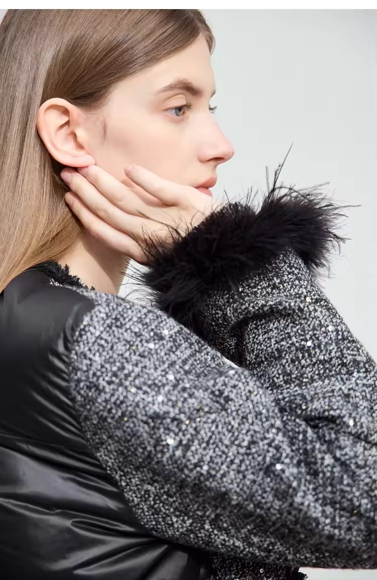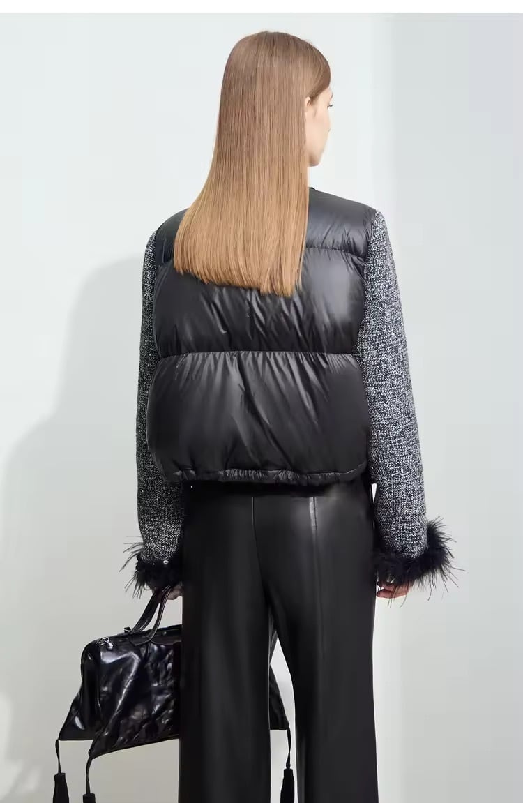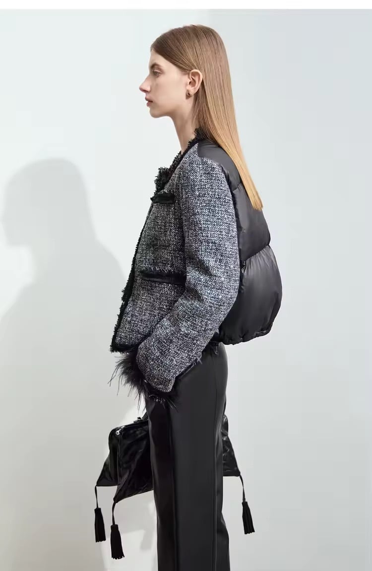 上質なツイードに、ダウンのボリューム感を組み合わせた異素材ミックスコートが登場!